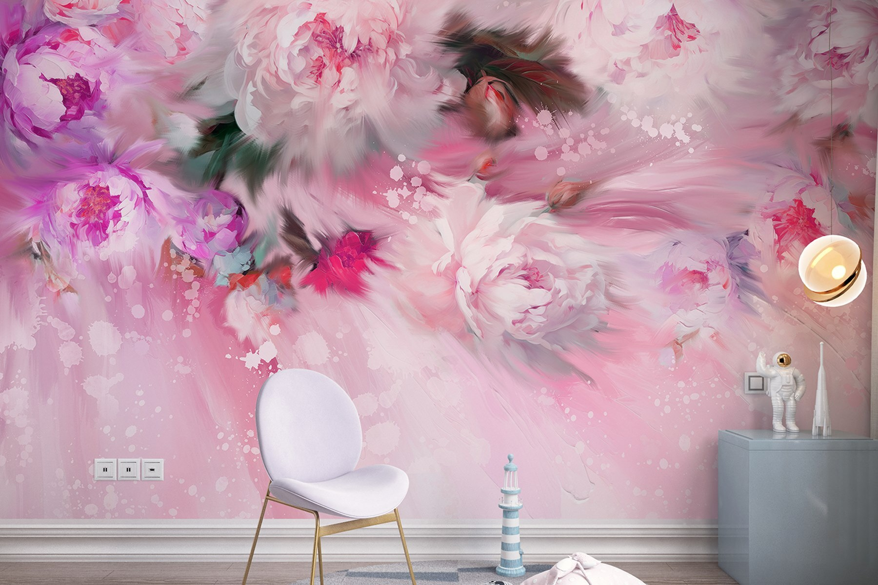 Μεταμορφώστε οποιονδήποτε χώρο με αυτή την υπέροχη τοιχογραφία τοίχου με ονειρικά λουλούδια που χορεύουν σε απαλό ροζ φόντο. Φανταστείτε να ξυπνάτε με τις παιώνιες να λικνίζονται χαριτωμένα στο αεράκι, με τα χρώματά τους να κοκκινίζουν ακριβώς όπως πρέπει. Αυτή η τοιχογραφία δεν είναι απλώς ένα κομμάτι διακόσμησης- είναι σαν ένας χαρούμενος φίλος που δεν αφήνει ποτέ το δωμάτιο να αισθάνεται βαρετό. Οι απαλές πιτσιλιές χρώματος προσκαλούν τη ζεστασιά, κάνοντας ακόμη και τις Δευτέρες να μοιάζουν με ένα φωτεινό πρωινό Σαββάτου. Είτε πρόκειται για μια ζεστή γωνιά ανάγνωσης είτε για ένα ζωντανό σαλόνι, αυτό το λουλουδάτο αριστούργημα προσθέτει την τέλεια πινελιά ιδιόρρυθμης γοητείας. Ποιος δεν θα χαμογελούσε βλέποντας αυτή την ομορφιά κάθε μέρα;
