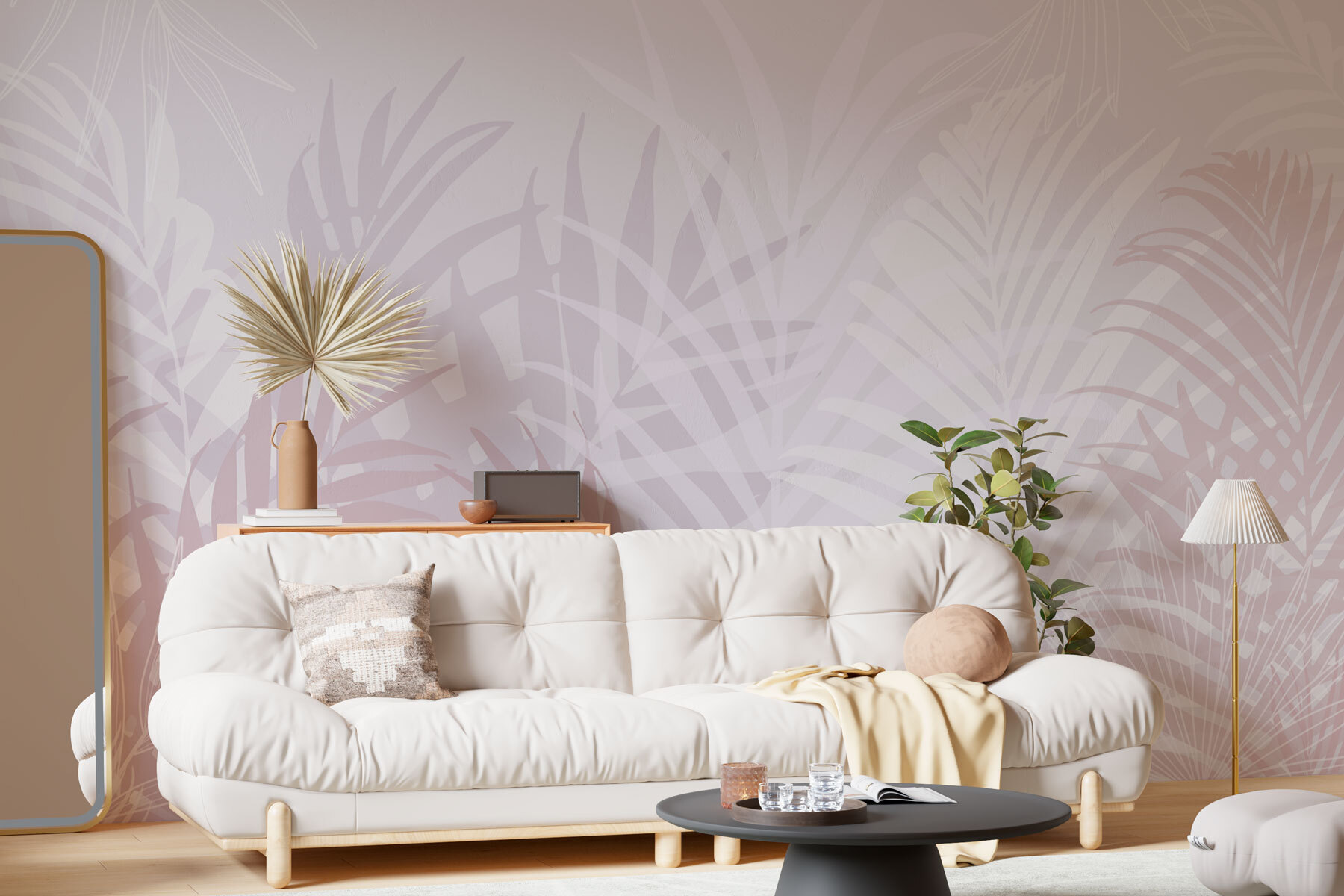 Μεταμορφώστε οποιοδήποτε δωμάτιο σε μια τροπική όαση με αυτή την υπέροχη τοιχογραφία τοίχου με απαλό λευκό και ροζ φύλλα. Απλά φανταστείτε το: ένα γαλήνιο σκηνικό που ψιθυρίζει χαλάρωση. Αυτό το σχέδιο δεν είναι μόνο για επίδειξη- φέρνει την ύπαιθρο μέσα, δημιουργώντας μια ηρεμιστική ατμόσφαιρα ιδανική για να πίνετε καφέ ένα τεμπέλικο κυριακάτικο πρωινό ή να φιλοξενείτε ένα άνετο δείπνο. Τα απαλά χρώματα μπορούν να κάνουν ακόμα και τους πιο μικρούς χώρους να μοιάζουν ανοιχτοί και φιλόξενοι. Θέλετε μια μικρή πινελιά φύσης στη διακόσμησή σας; Ναι, παρακαλώ! Είναι έναυσμα για συζήτηση, για βελτίωση της διάθεσης και ποιος δεν το θέλει αυτό;