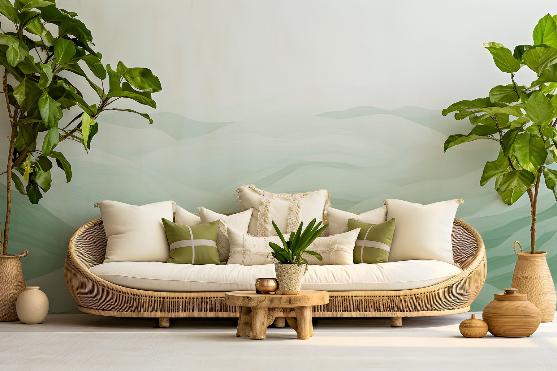 Φανταστείτε να μπαίνετε σε ένα γαλήνιο, ονειρικό τοπίο κάθε φορά που κοιτάζετε τον τοίχο σας. Αυτή η τοιχογραφία, με τις απαλές πράσινες αποχρώσεις και τα απαλά, ρέοντα σχήματα, προσκαλεί μια γαλήνια ατμόσφαιρα σε κάθε δωμάτιο. Φανταστείτε την να φωτίζει μια ζεστή γωνιά ή να χρησιμεύει ως εντυπωσιακό σκηνικό για τη μικρή σας γωνιά ανάγνωσης. Το λεπτό εφέ υδατογραφίας προσθέτει μια πινελιά ιδιοτροπίας, κάνοντάς το να μοιάζει με έναν μυστικό κήπο ή ένα ομιχλώδες πρωινό. Είναι σαν να φέρνετε ένα κομμάτι της φύσης μέσα στο σπίτι – ιδανικό για εκείνες τις μέρες που το κυνήγι του ηλιοβασιλέματος έξω δεν είναι εφικτό. Απόλυτα διακριτικό, αλλά και τόσο γοητευτικό!