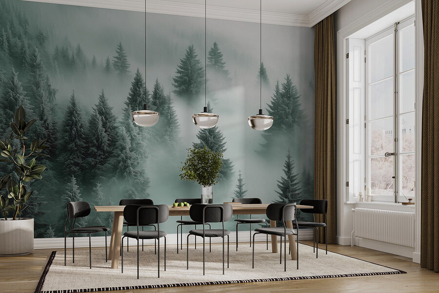 Φανταστείτε να μπαίνετε σε μια ζεστή και φιλόξενη καμπίνα και μετά – μπαμ! – να σας υποδέχεται αυτή η εκπληκτική τοιχογραφία με δέντρα στην ομίχλη. Είναι σαν να φέρνετε τη φύση στο σαλόνι σας, αλλά χωρίς τον κίνδυνο να σας χαλάσει το πάρτι ένας σκίουρος. Τα απαλά πράσινα χρώματα και η ομίχλη κάνουν τα πάντα να μοιάζουν ήρεμα και γαλήνια, ιδανικά για τις τεμπέλικες Κυριακές ή μετά από μια κουραστική μέρα. Φανταστείτε να χαλαρώνετε με ένα καλό βιβλίο, το τέλειο φλιτζάνι τσάι στο χέρι και να χάνεστε σε αυτό το ονειρικό τοπίο. Είναι έναυσμα για συζήτηση – οι επισκέπτες θα γοητευτούν. Είναι αυτό ένα μαγικό δάσος; Μια μυστική πύλη; Εσείς αποφασίζετε. Προσθέτοντας αυτή την τοιχογραφία είναι σαν να μοιράζεστε ένα μικρό κομμάτι ηρεμίας με όποιον μπαίνει στο χώρο σας.