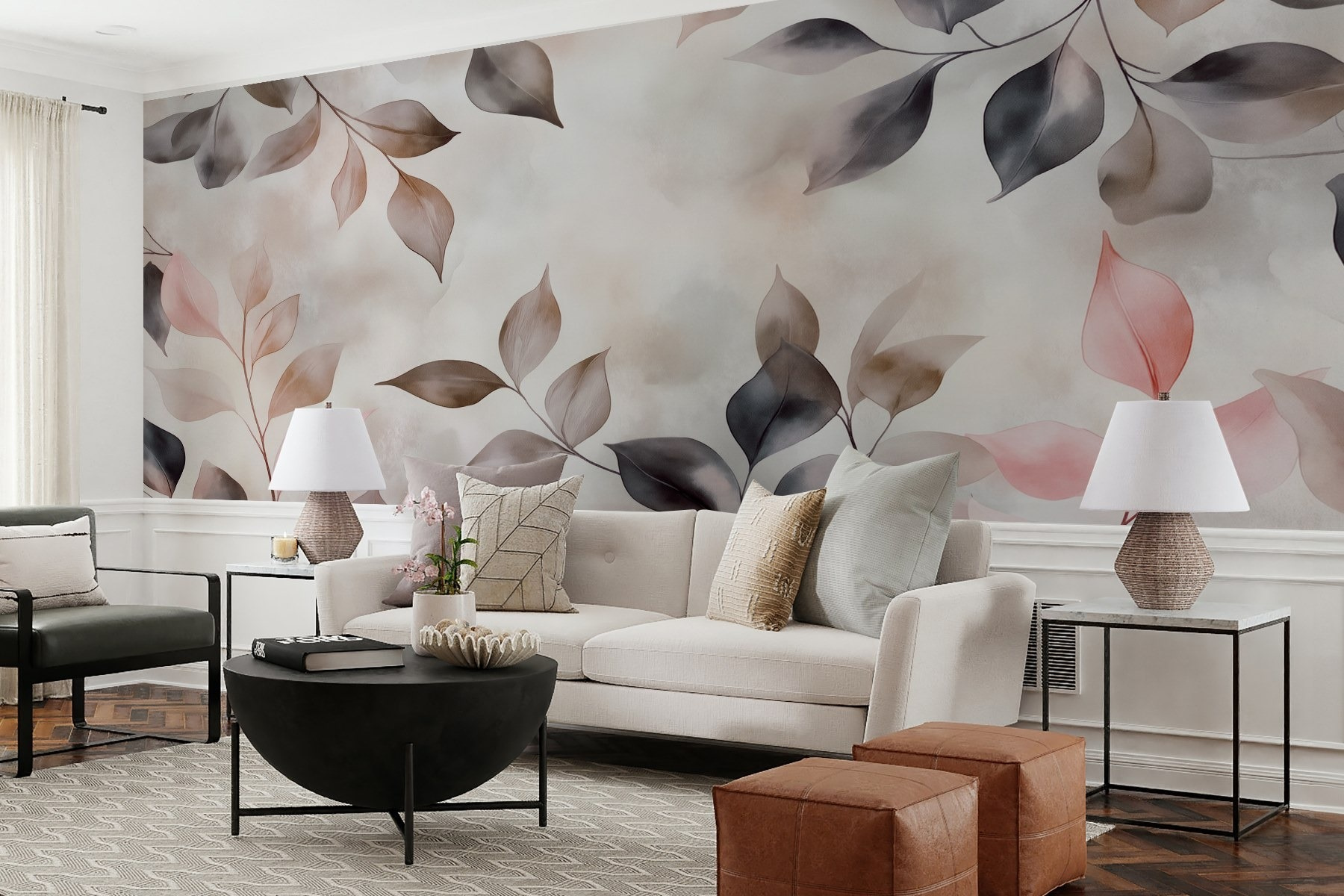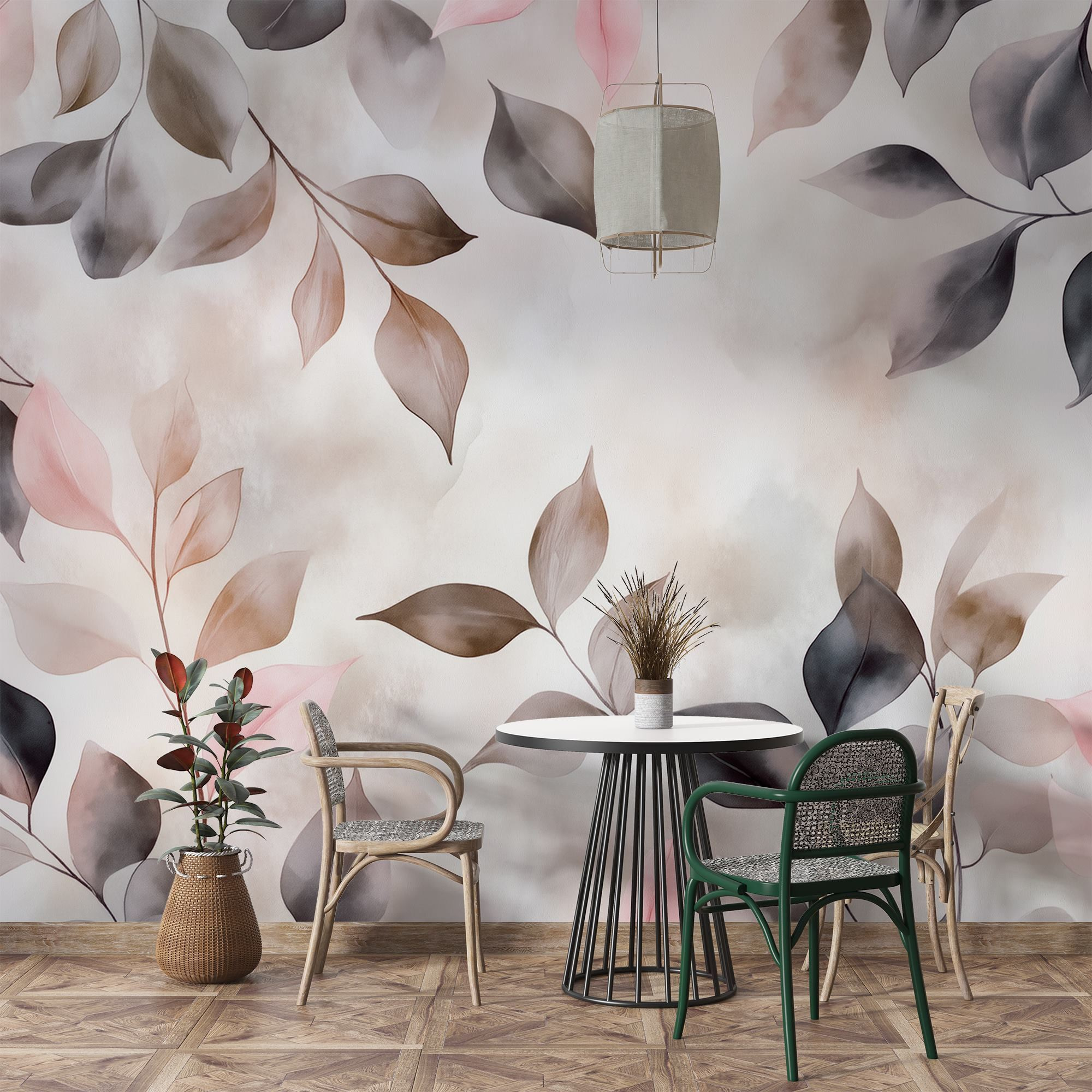 Μεταμορφώστε οποιοδήποτε δωμάτιο σε ένα ζεστό καταφύγιο με τα “Λεπτά φύλλα σε απαλές αποχρώσεις”. Αυτή η τοιχογραφία φέρνει την ομορφιά της φύσης στους εσωτερικούς χώρους, τυλίγοντας το χώρο σας με καταπραϋντικά παστέλ χρώματα και διακριτικές σκιές. Φανταστείτε να πίνετε ένα φλιτζάνι τσάι ενώ απολαμβάνετε την απαλή ατμόσφαιρα που δημιουργεί. Είναι σαν να έχετε έναν γαλήνιο τοίχο στον κήπο – χωρίς την κηπουρική εργασία! Το ύφος της υδατογραφίας προσθέτει μια ονειρική πινελιά, ιδανική για να ονειροπολήσετε ή απλώς να χαλαρώσετε μια στιγμή. Είναι ένας εξαιρετικός λόγος για συζήτηση – οι καλεσμένοι σας μπορεί να βρεθούν να αναρωτιούνται τι χρώμα έχουν αυτά τα μυστηριώδη φύλλα! Συνολικά, είναι η γοητεία της φύσης στα χέρια σας, έτοιμη να αναβαθμίσει κάθε τοίχο.