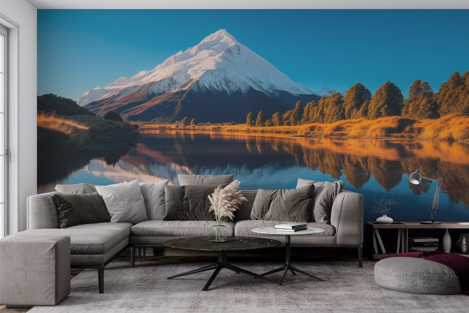 Μεταμορφώστε οποιονδήποτε χώρο με αυτή την εκπληκτική τοιχογραφία με μεγαλοπρεπή βουνά, καταπράσινα δέντρα και ένα γαλήνιο υδάτινο σώμα. Φανταστείτε να απολαμβάνετε τον πρωινό σας καφέ κοιτάζοντας αυτή τη ζωντανή σκηνή, σχεδόν νιώθοντας τον καθαρό αέρα του βουνού στα μάγουλά σας. Τα πλούσια χρώματα και η γαλήνια ατμόσφαιρα μπορούν να σας ταξιδέψουν σε ένα γαλήνιο καταφύγιο ακριβώς στο σπίτι σας. Είναι σαν να φέρνετε ένα κομμάτι της φύσης μέσα στο σπίτι – ιδανικό για όσους επιθυμούν λίγη υπαίθρια μαγεία χωρίς όλη την πεζοπορία. Επιπλέον, ποιος δεν θα ήθελε ο τοίχος του να είναι ο πρωταγωνιστής της παράστασης; Μια γλυκιά υπενθύμιση για να πάρετε μια ανάσα και να εκτιμήσετε τις απλές ομορφιές της ζωής.