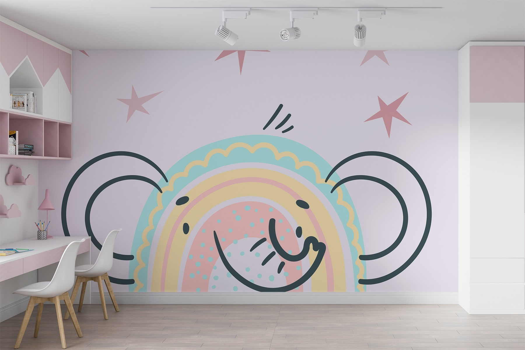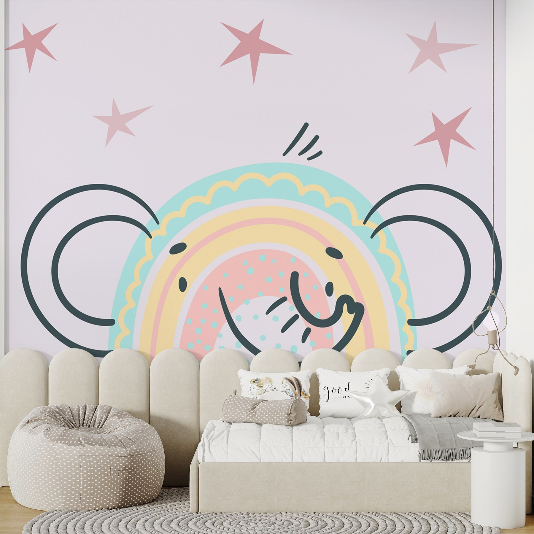 Φωτίστε κάθε δωμάτιο με αυτή τη γοητευτική τοιχογραφία! Φανταστείτε έναν παιχνιδιάρικο ελέφαντα φωλιασμένο μέσα σε ένα πολύχρωμο ουράνιο τόξο, να χαμογελά σαν να μοιράζεται ένα μυστικό. Είναι σαν μια βουτιά χαράς να προσγειώθηκε ακριβώς στον τοίχο σας. Ιδανική για ένα παιδικό δωμάτιο ή έναν παιχνιδιάρικο χώρο διαβίωσης, αυτή η ιδιόρρυθμη τοιχογραφία προσκαλεί χαμόγελα και εξάπτει τη φαντασία. Σκεφτείτε μόνο τις ιστορίες που θα μπορούσαν να εκτυλιχθούν κάτω από αυτό το χαρούμενο ουράνιο τόξο – τα μικρά σας μπορεί ακόμη και να πιστέψουν ότι βρίσκονται σε μια μαγική ζούγκλα! Με διασκεδαστικά χρώματα και φιλική ατμόσφαιρα, είναι βέβαιο ότι θα προκαλέσει συζητήσεις.