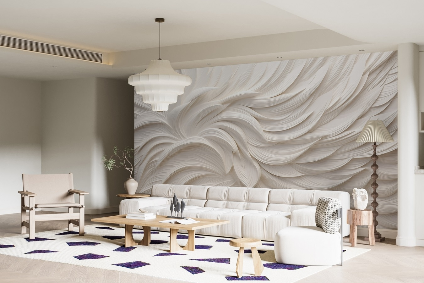 Μεταμορφώστε το χώρο σας με αυτή την ονειρική τοιχογραφία που μοιάζει με μια απαλή αγκαλιά. Φανταστείτε έναν λευκό καμβά όπου τα λεπτά, ρέοντα σχήματα δημιουργούν μια γαλήνια ατμόσφαιρα – σαν φτερά που παρασύρονται απαλά από το αεράκι. Αυτό δεν είναι απλώς ένα σκηνικό- είναι μια εμπειρία. Φανταστείτε να ξυπνάτε με αυτό το ηρεμιστικό θέαμα κάθε πρωί ή να κουλουριάζεστε στον καναπέ, νιώθοντας “ζεν” μόνο και μόνο κοιτάζοντάς το. Είναι επίσης ευπροσάρμοστο, ταιριάζει τέλεια σε ένα άνετο σαλόνι, ένα κομψό γραφείο ή ακόμη και σε εκείνη τη γωνιά ανάγνωσης που χρειάζεται λίγη αγάπη. Προσθέστε μια πινελιά ιδιοτροπίας και ηρεμίας στους τοίχους σας και δείτε τη μαγεία να ξεδιπλώνεται.