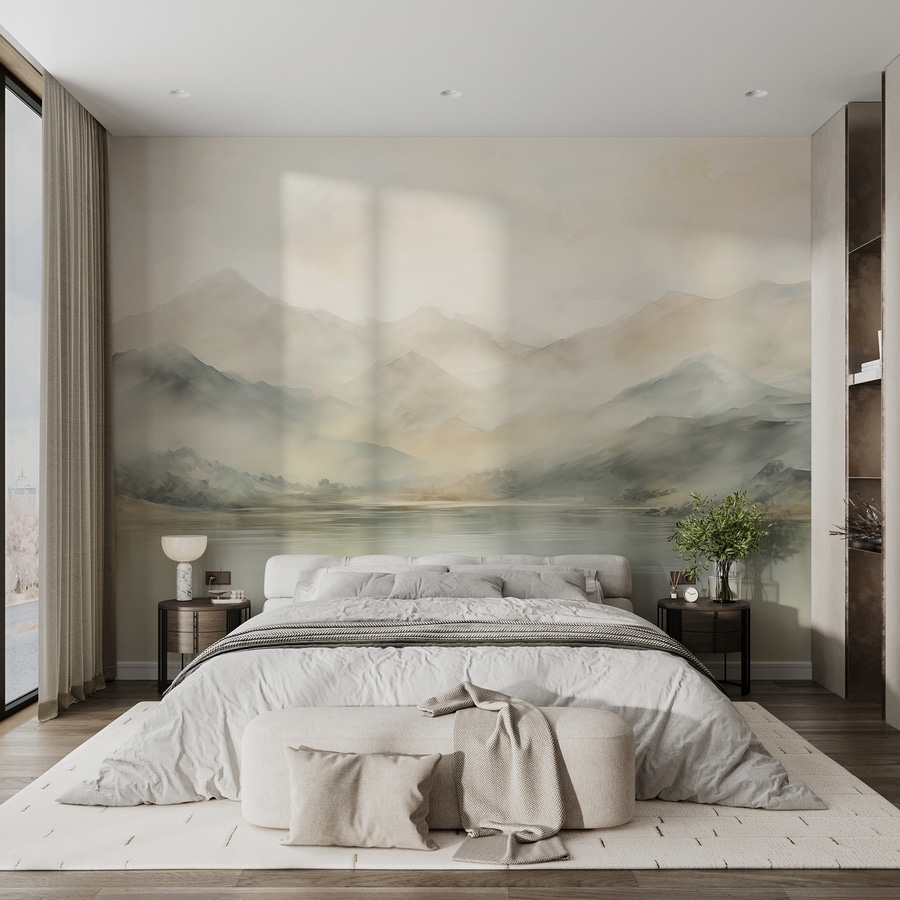 Μεταμορφώστε οποιονδήποτε τοίχο σε μια γαλήνια απόδραση με αυτή την εκπληκτική τοιχογραφία με νερό και μακρινά βουνά. Φανταστείτε να ατενίζετε απαλές αποχρώσεις που αναμειγνύονται μεταξύ τους, παρουσιάζοντας μια ήρεμη, σχεδόν ονειρική σκηνή. Είναι σαν μια μικρογραφία διακοπών ακριβώς στο σαλόνι σας. Ιδανικό για να χαλαρώσετε μετά από μια κουραστική μέρα ή να ξεκινήσετε τις ονειροπολήσεις για περιπέτειες πεζοπορίας. Οι απαλές πινελιές προκαλούν συναισθήματα γαλήνης-ιδανικό για μια ζεστή γωνιά ανάγνωσης ή ακόμη και για ένα ζωντανό σκηνικό δείπνου. Απλά φανταστείτε τις συζητήσεις να ρέουν, ενώ αυτή η ομορφιά δημιουργεί το τέλειο σκηνικό. Δεν είναι απλώς διακόσμηση, είναι μια πρόσκληση για χαλάρωση.