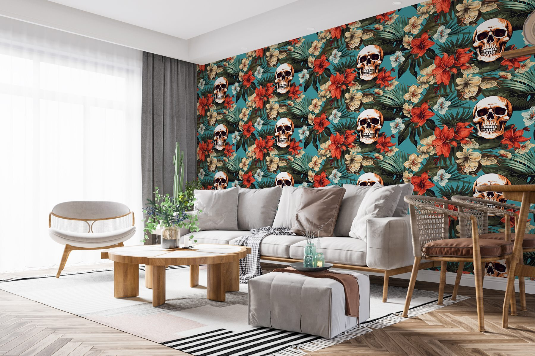 Φωτίστε το χώρο σας με αυτή την εντυπωσιακή τοιχογραφία, όπου τα τολμηρά λουλούδια φλερτάρουν με τα κρανία σε έναν χορό ζωής και θανάτου. Είναι σαν ένα άγριο πάρτι στον κήπο που είναι λίγο… νευρικό. Φανταστείτε να μπαίνετε στο δωμάτιό σας και να σας υποδέχονται ζωηρά άνθη, τα χρώματα των οποίων ξεπηδούν σε ένα δροσερό μπλε φόντο, ενώ αυτά τα θρασύτατα κρανία προσθέτουν έναν υπαινιγμό ίντριγκας. Αυτή η τοιχογραφία δεν είναι απλώς διακόσμηση- προκαλεί συζητήσεις, σας κάνει να σκέφτεστε, και ειλικρινά, ποιος δεν θα λάτρευε μια μικρή παιχνιδιάρικη αντίθεση; Ιδανική για όσους αγαπούν τη μοναδική, εντυπωσιακή τέχνη που αφηγείται μια ιστορία – αυτή η τοιχογραφία είναι απαραίτητη για όποιον θέλει ο χώρος του να είναι ζωντανός και τολμηρός. Έτσι, προχωρήστε – αφήστε τους τοίχους σας να ανθίσουν (με μια ανατροπή)!