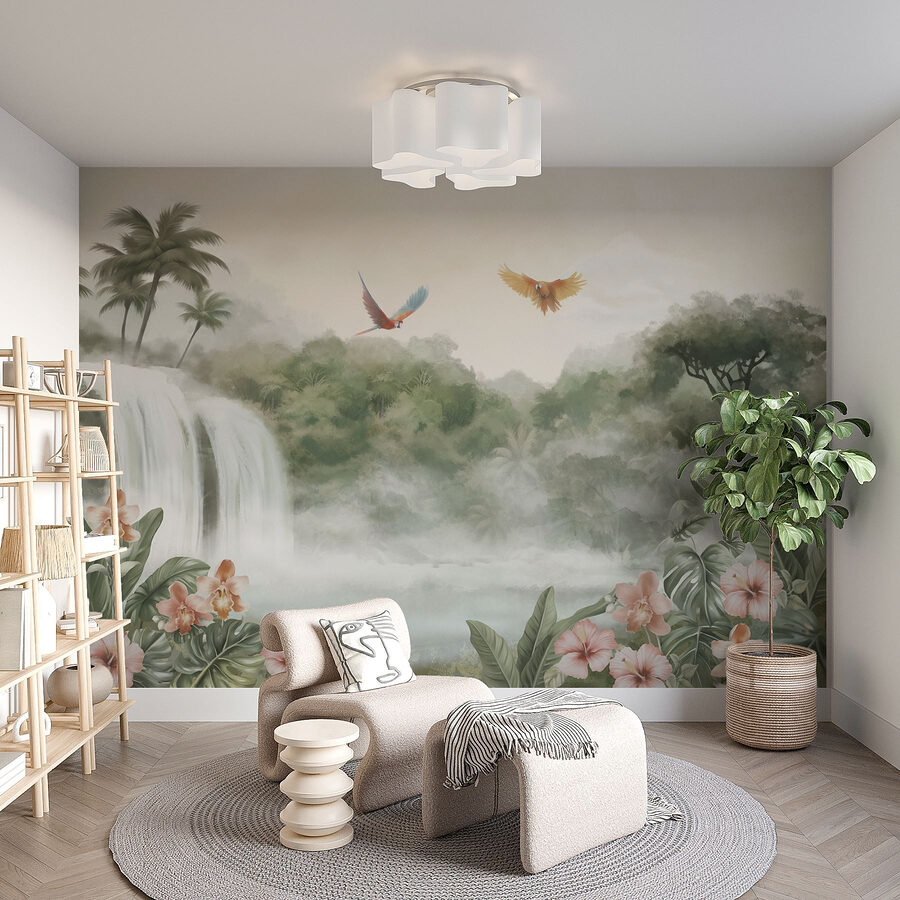 Μεταμορφώστε οποιονδήποτε χώρο σε έναν γαλήνιο τροπικό παράδεισο με αυτή την εκπληκτική τοιχογραφία καταρράκτη με ζωντανά πουλιά που υψώνονται πάνω από πλούσια βλάστηση. Φανταστείτε να μπαίνετε σε μια γαλήνια όαση κάθε μέρα, καθώς ο απαλός ήχος του καταρράκτη νερού γεμίζει το μυαλό σας. Τα ντελικάτα ροζ λουλούδια ξεπροβάλλουν μέσα από το φύλλωμα, προσθέτοντας μια πινελιά χρώματος που είναι ιδανική για να φωτίσει μια ζεστή γωνιά ή να κάνει μια τολμηρή δήλωση σε έναν χαρακτηριστικό τοίχο. Είναι σαν να φέρνετε ένα κομμάτι της φύσης σε εσωτερικό χώρο – δεν απαιτούνται μπότες πεζοπορίας! Ιδανική για τους λάτρεις της φύσης, αυτή η τοιχογραφία σας προσκαλεί να σταματήσετε, να αναπνεύσετε και να απολαύσετε ένα μικρό κομμάτι ηρεμίας στο σπίτι σας. Επιπλέον, μπορεί να σας εμπνεύσει ονειροπολήσεις για τροπικές διακοπές, ακόμη και αν έξω είναι ένα ψυχρό απόγευμα. Αγκαλιάστε την ομορφιά και αφήστε τους τοίχους σας να διηγηθούν μια ιστορία!
