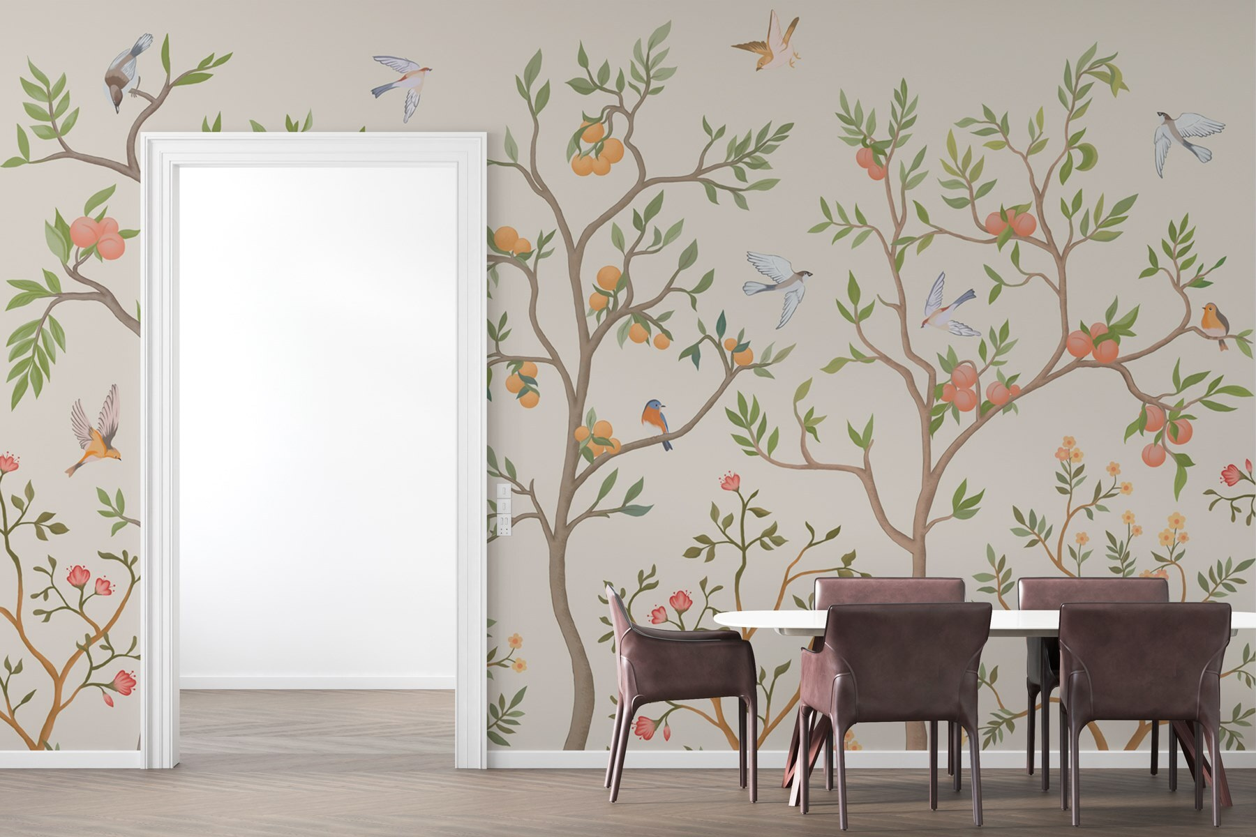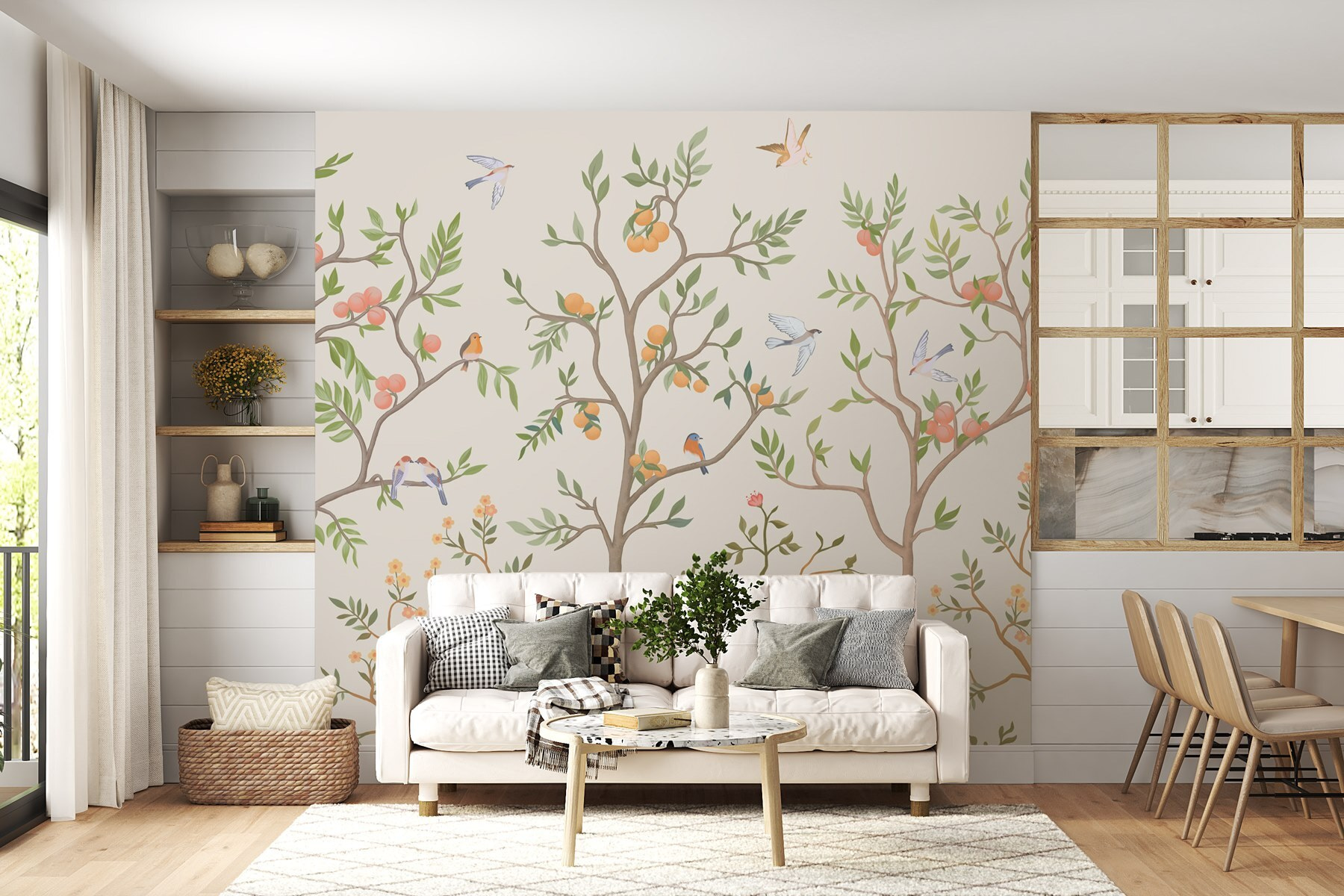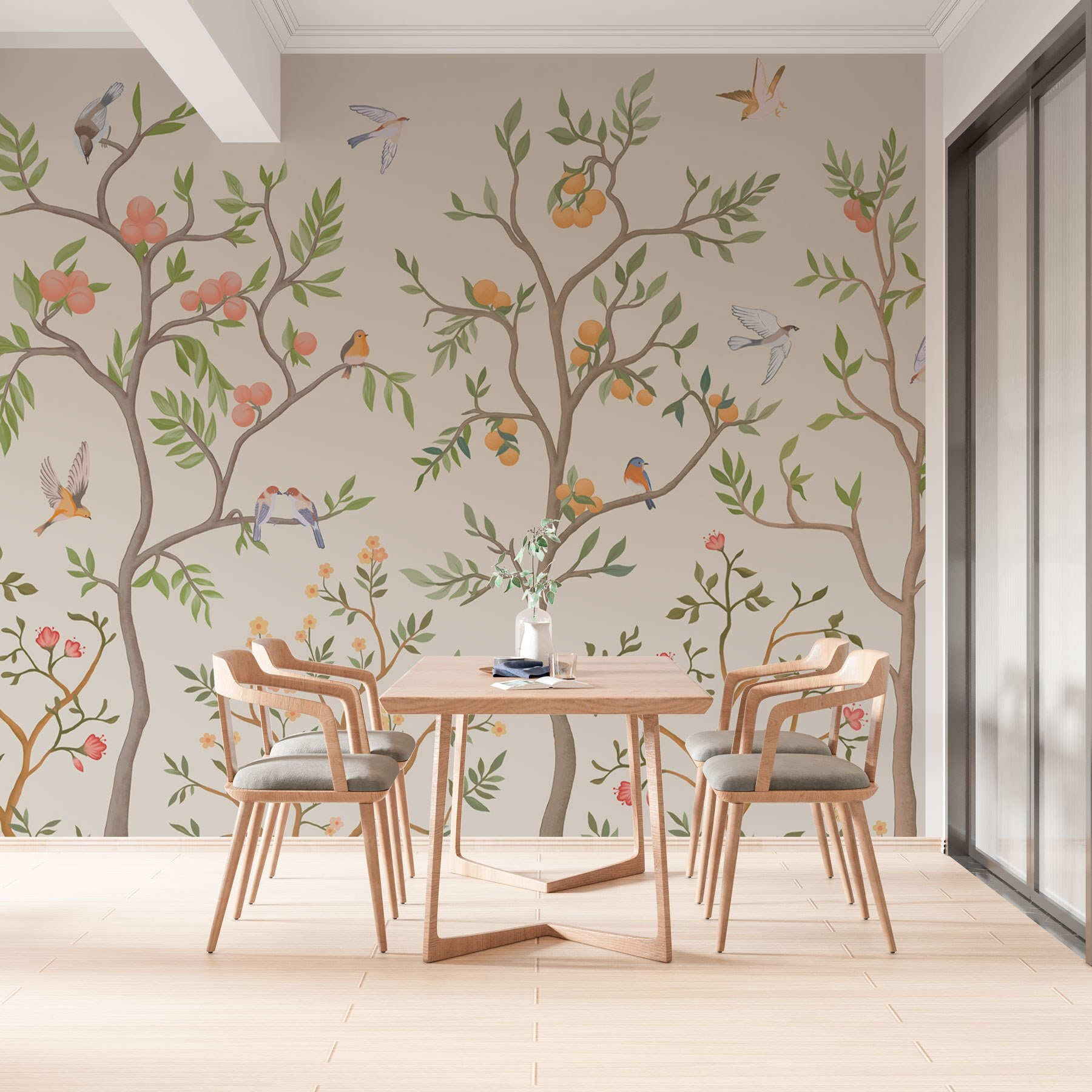 Μεταμορφώστε το χώρο σας σε ένα γαλήνιο καταφύγιο με αυτή την εκπληκτική τοιχογραφία τοίχου με τα απολαυστικά πουλιά και τα ζωντανά δέντρα. Φανταστείτε να μπαίνετε σε ένα γαλήνιο καταφύγιο όπου η φύση φτερουγίζει ακριβώς στους τοίχους σας! Οι απαλές αποχρώσεις και τα παιχνιδιάρικα σχέδια δημιουργούν μια ζεστή ατμόσφαιρα που θα μπορούσε να κάνει οποιονδήποτε να νιώσει αμέσως άνετα. Είναι σαν να φέρνετε την ύπαιθρο στο εσωτερικό χωρίς τα ενοχλητικά ζωύφια. Φανταστείτε να κουλουριάζεστε με ένα καλό βιβλίο, περιτριγυρισμένοι από αυτά τα φιλικά πουλάκια – είναι το τέλειο σκηνικό για χαλαρά απογεύματα ή ζωηρές συζητήσεις. Ελκυστική και αναζωογονητική, αυτή η τοιχογραφία είναι βέβαιο ότι θα φωτίσει κάθε δωμάτιο. Ποιος να φανταζόταν ότι ένα μικρό έργο τέχνης θα μπορούσε να φέρει τόση χαρά;