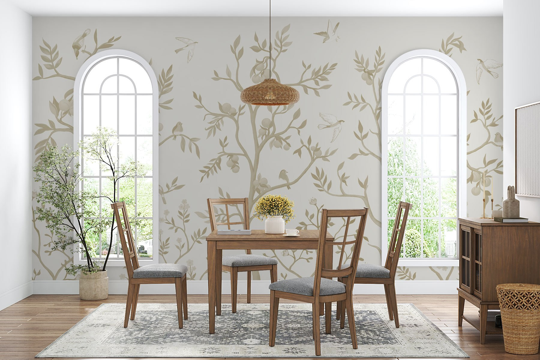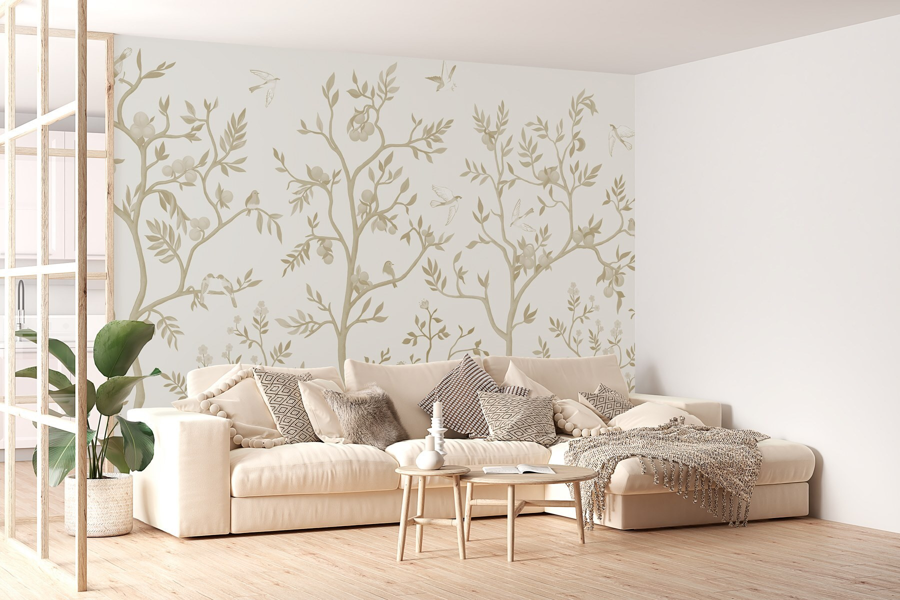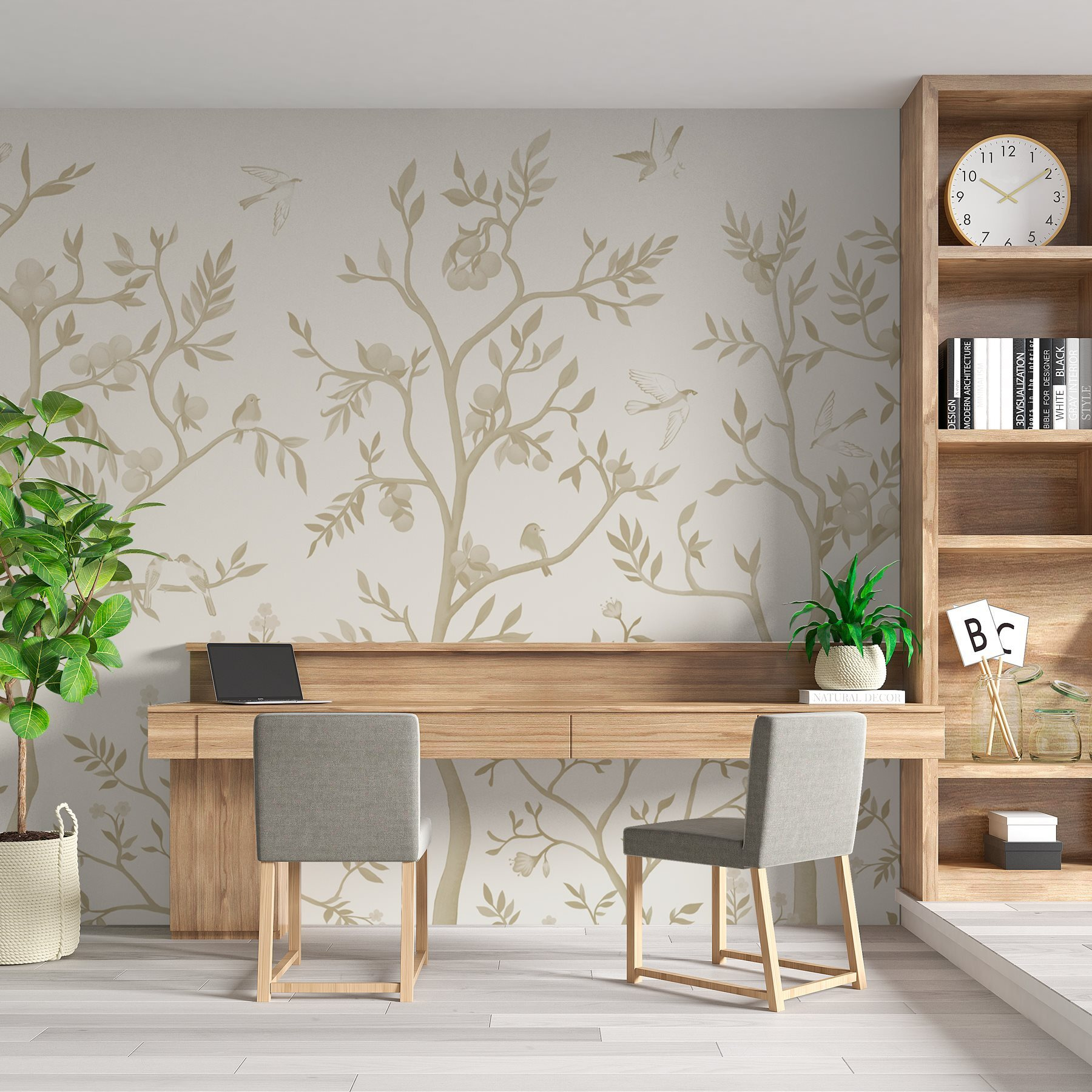 Μεταμορφώστε οποιονδήποτε χώρο με αυτή τη μαγευτική τοιχογραφία με λεπτεπίλεπτα πουλιά και χαριτωμένα δέντρα, ιδανική για να φέρετε ένα κομμάτι της φύσης στους εσωτερικούς χώρους. Φανταστείτε να πίνετε τον πρωινό σας καφέ, ενώ τα πουλιά μοιάζουν να φλυαρούν, με τους ψιθύρους τους να αναμειγνύονται με τις απαλές αποχρώσεις ενός ήρεμου κήπου. Αυτή η τοιχογραφία δεν ντύνει απλώς τους τοίχους σας- προσκαλεί μια ήρεμη ατμόσφαιρα, κάνοντας ακόμη και τα πιο καθημερινά δωμάτια να μοιάζουν με ένα γαλήνιο καταφύγιο. Αν τα σπίτια είχαν προσωπικότητες, αυτή θα ήταν ο ευγενικός φίλος που ξέρει πάντα πώς να σας χαλαρώσει. Είναι σαν να έχετε έναν γαλήνιο περίπατο στη φύση ακριβώς στο σαλόνι σας – χωρίς τα έντομα! Είτε σε μια ζεστή γωνιά είτε σε έναν φωτεινό διάδρομο, θα είναι σίγουρα έναυσμα για συζήτηση. Αφήστε λοιπόν αυτούς τους τοίχους να τραγουδήσουν!