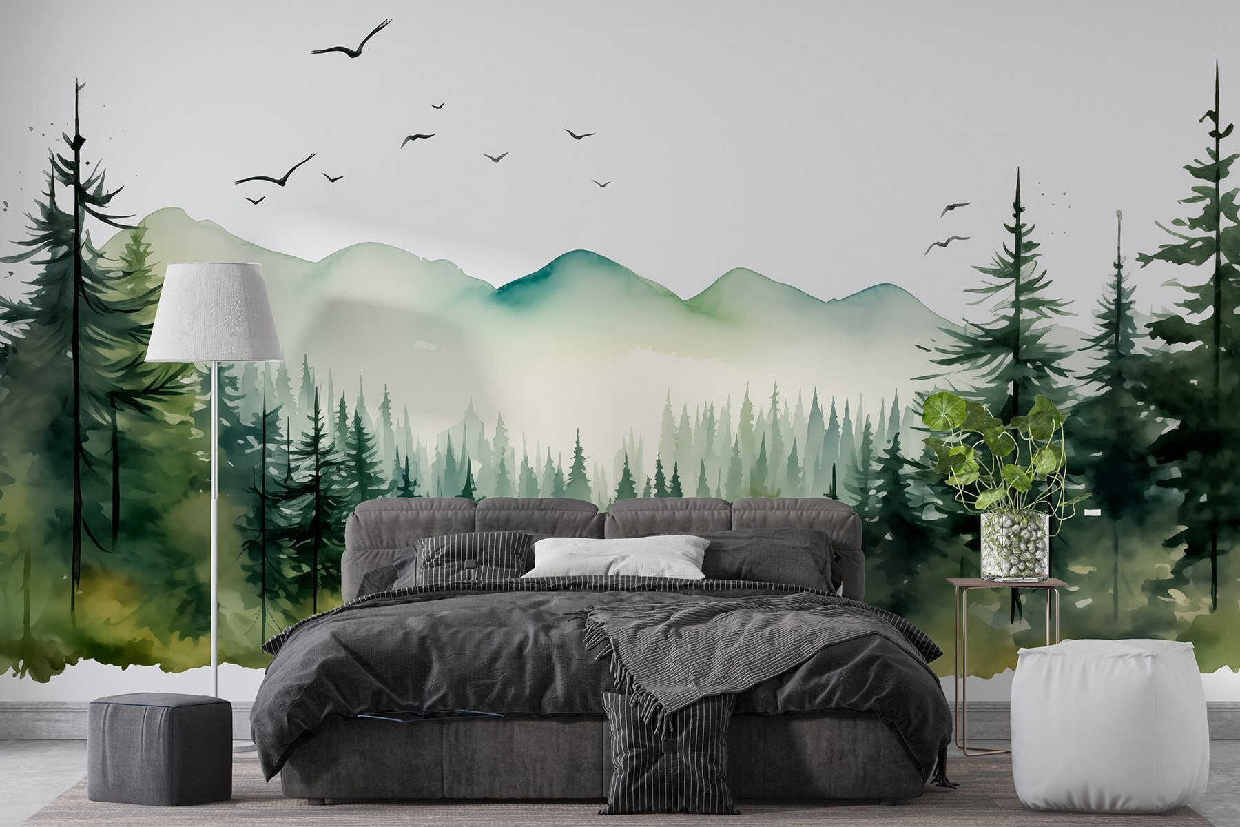 Μεταμορφώστε οποιονδήποτε χώρο σε μια γαλήνια δασική απόδραση με αυτή την εκπληκτική τοιχογραφία ακουαρέλας ενός δάσους και βουνών. Φανταστείτε το εξής: μπαίνετε στο δωμάτιό σας, και ΜΠΑΜ! Νιώθετε σαν να είστε μέσα στη φύση, με πλούσια πράσινα και ομιχλώδη μπλε χρώματα να σας τυλίγουν σαν μια ζεστή κουβέρτα. Κάθε ματιά φέρνει λίγο καθαρό αέρα, ίσως ακόμη και το αχνό κελάηδισμα των πουλιών – εντάξει, ίσως όχι, αλλά σίγουρα έτσι αισθάνεστε. Ιδανική για το σαλόνι ή το υπνοδωμάτιο, αυτή η τοιχογραφία ψιθυρίζει ηρεμία. Είναι σαν να έχετε ένα κομμάτι από την ύπαιθρο στον τοίχο σας, χωρίς να απαιτούνται μπότες πεζοπορίας. Απλά φανταστείτε να πίνετε τον πρωινό σας καφέ μπροστά του – ευτυχισμένο, σωστά; Οπότε, προχωρήστε, αφήστε τη φύση να μπει μέσα – οι τοίχοι σας θα σας ευχαριστήσουν!