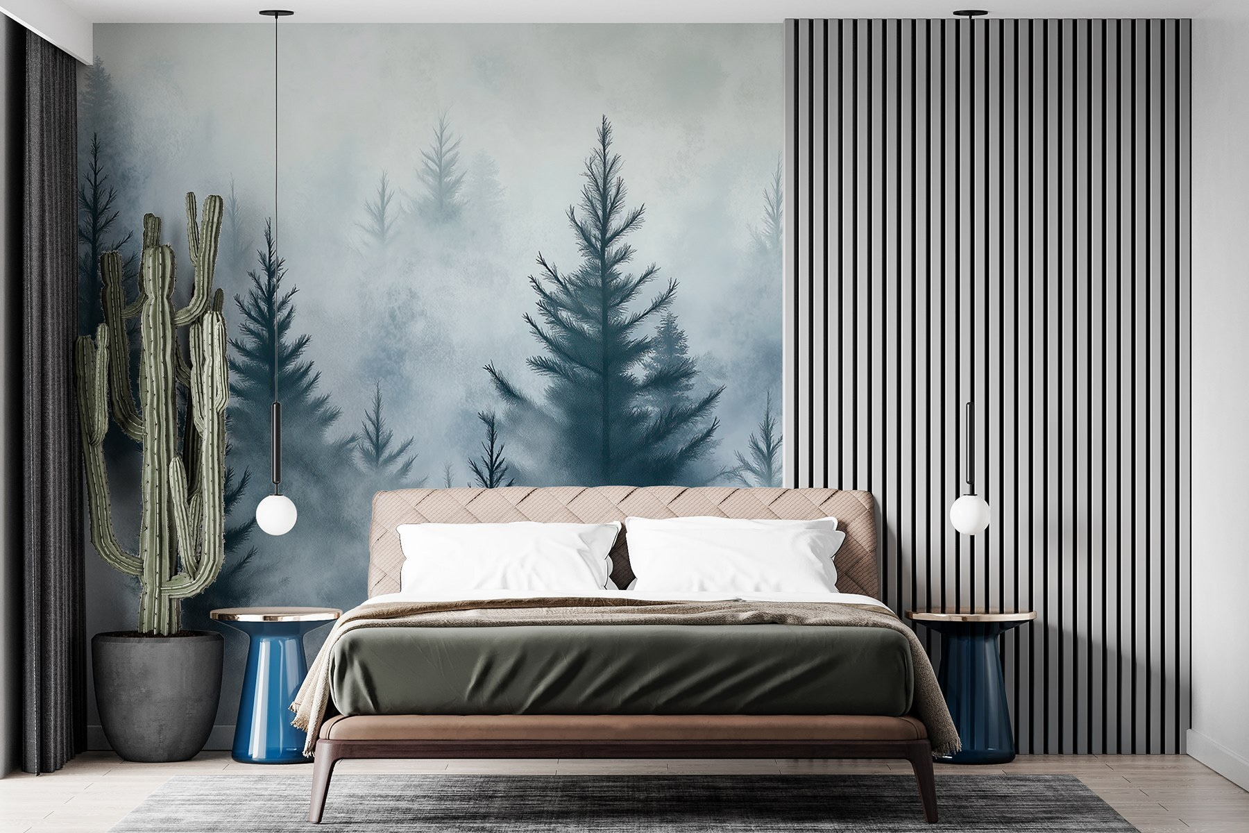 Φανταστείτε να μπαίνετε σε ένα δωμάτιο και να σας υποδέχεται ένα γαλήνιο δάσος καλυμμένο από απαλή ομίχλη. Αυτή η τοιχογραφία τοίχου, “Ομάδα δέντρων στην ομίχλη”, κάνει ακριβώς αυτό, φέρνοντας μια ειρηνική δασική ατμόσφαιρα στον χώρο σας. Είναι σαν να έχετε μια μίνι απόδραση στη φύση χωρίς να χρειάζεστε μπότες πεζοπορίας. Φανταστείτε τον εαυτό σας να κουλουριάζεται με ένα βιβλίο, με την απαλή ομίχλη και τα πανύψηλα δέντρα να σας τυλίγουν σε μια ζεστή αγκαλιά. Οι δροσεροί τόνοι και τα κλαδιά που ψιθυρίζουν μπορούν να μετατρέψουν οποιονδήποτε τοίχο σε μια γαλήνια όαση. Ιδανική για ένα σαλόνι ή ακόμα και για μια ήσυχη γωνιά για ονειροπόληση, αυτή η τοιχογραφία προσκαλεί ένα κομμάτι άγριας φύσης στην καθημερινή ζωή. Απλά προσθέστε την αγαπημένη σας καρέκλα, ένα φλιτζάνι τσάι και αφήστε τη μέρα να ξεχαστεί. Ποιος ήξερε ότι το να είσαι στο σπίτι μπορεί να μοιάζει με απόδραση;