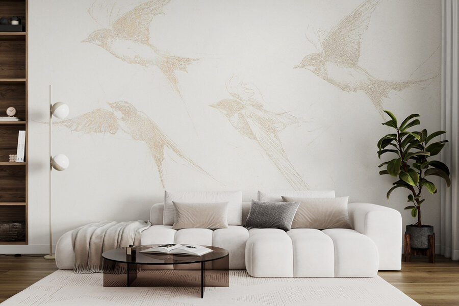 Αναβαθμίστε το χώρο σας με αυτή την εκπληκτική τοιχογραφία τοίχου με μια ομάδα πουλιών σε πτήση. Είναι σαν να έχετε ένα κομμάτι της φύσης ακριβώς στον τοίχο σας – εδώ δεν χρειάζονται κιάλια για την παρατήρηση πουλιών! Το απαλό, σκιτσογραφημένο σχέδιο προσθέτει μια απαλή πινελιά, καθιστώντας το ιδανικό για κάθε δωμάτιο. Φανταστείτε να απολαμβάνετε τον πρωινό σας καφέ, ενώ ατενίζετε αυτά τα χαριτωμένα πλάσματα που πετούν. Με λίγη ιδιοτροπία και πολλή κομψότητα, αυτή η τοιχογραφία προσκαλεί αισθήματα ελευθερίας και ελαφρότητας. Είναι ιδανική για τη δημιουργία μιας ήρεμης ατμόσφαιρας, και ποιος δεν θέλει λίγη φύση στο εσωτερικό του σπιτιού; Ιδανική για εκείνες τις φιλόξενες γωνιές όπου απλά θέλετε να χαλαρώσετε.