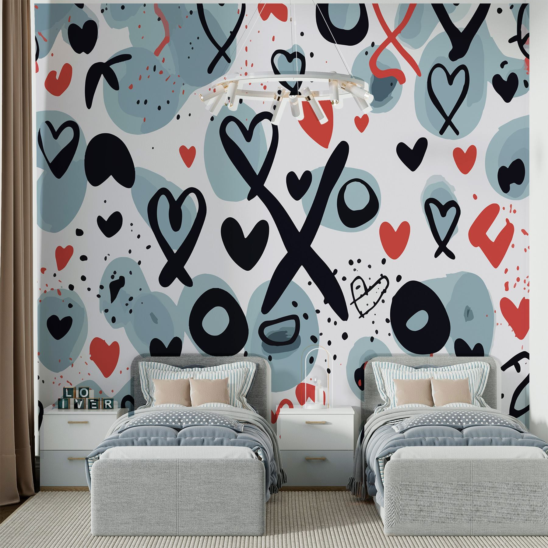 Μεταμορφώστε οποιονδήποτε θαμπό τοίχο σε ένα χαρούμενο καταφύγιο με αυτό το “Ταπετσαρίες Pattern of Hearts and Symbols”. Φανταστείτε να μπαίνετε σε ένα δωμάτιο και να αισθάνεστε αμέσως αυτή τη ζεστή, χνουδωτή ατμόσφαιρα. Το παιχνιδιάρικο μείγμα από καρδιές, φιλιά και funky σύμβολα χορεύουν στον τοίχο, ψιθυρίζοντας γλυκά μηνύματα σε όποιον εισέρχεται. Ιδανική για μια ζεστή γωνιά ή ακόμη και για μια ζωντανή είσοδο, αυτή η τοιχογραφία δεν διακοσμεί απλώς, αλλά προκαλεί χαρά.