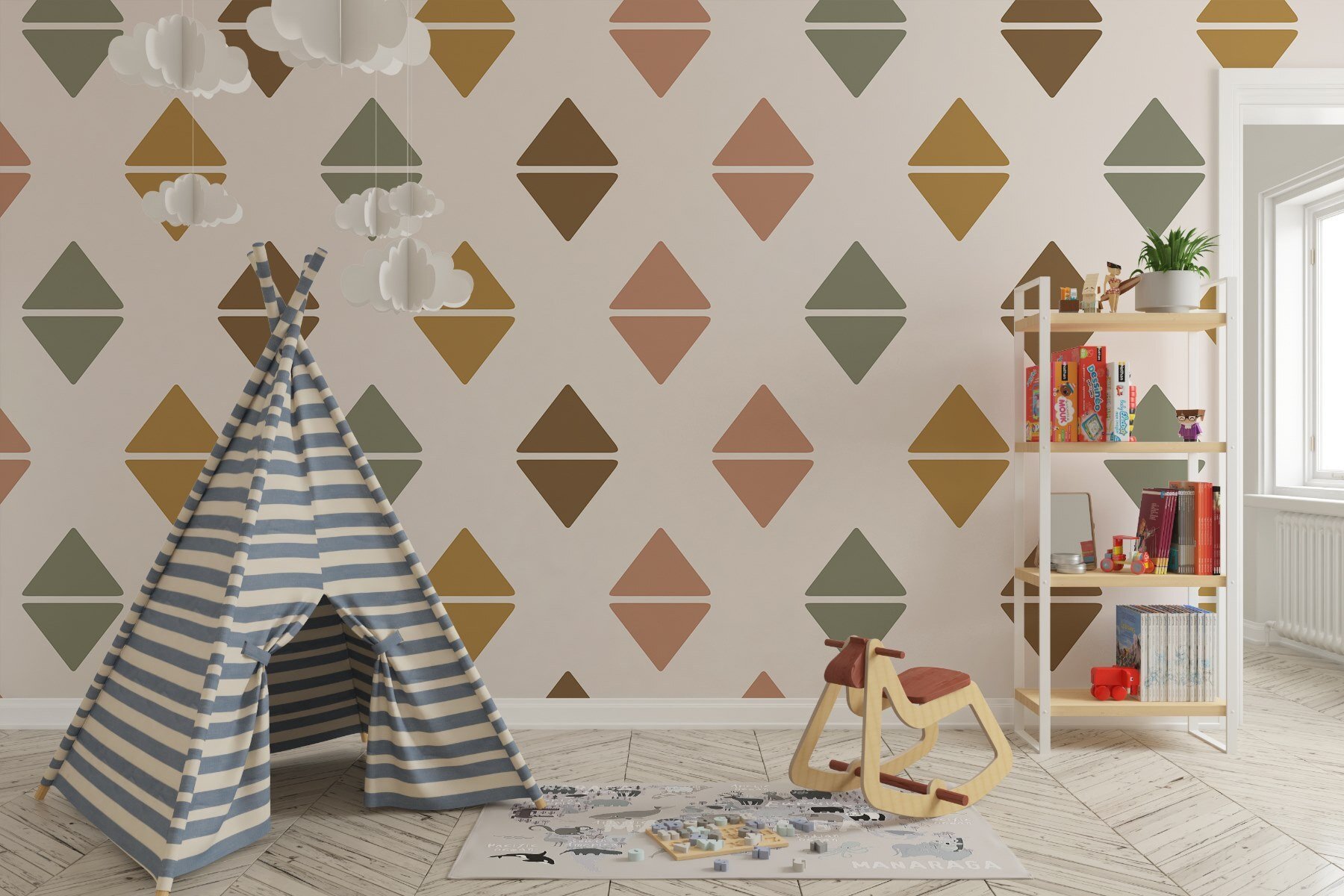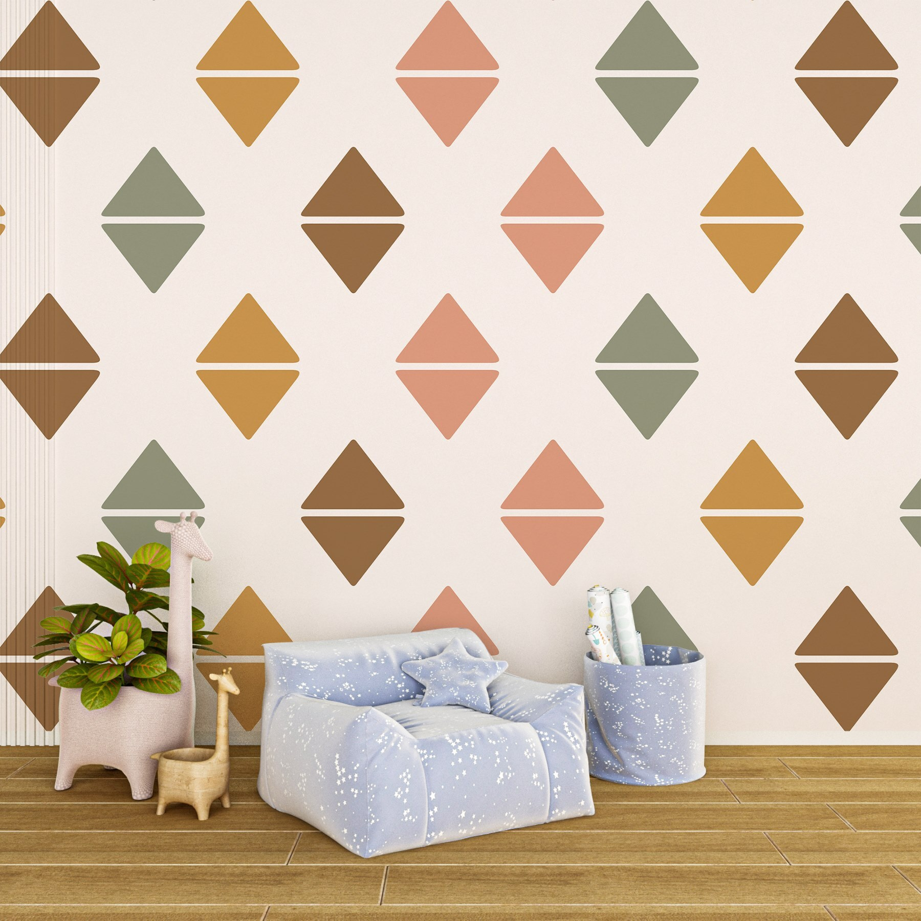 Μπείτε σε έναν κόσμο όπου οι τοίχοι λένε ιστορίες και αυτή η τοιχογραφία είναι ο πρωταγωνιστής. Με το παιχνιδιάρικο μοτίβο από πολύχρωμα διαμάντια, προσδίδει μια ζεστή, φιλόξενη ατμόσφαιρα που ζητιανεύει για προσοχή. Φανταστείτε να πίνετε καφέ σε ένα ηλιόλουστο δωμάτιο, με τις απαλές αποχρώσεις να μαλακώνουν τις γωνίες, κάνοντας τα πάντα να μοιάζουν λίγο πιο ζεστά. Οι επισκέπτες θα μπορούσαν ακόμη και να παραμείνουν λίγο περισσότερο, παρασυρόμενοι από αυτά τα απολαυστικά σχήματα – ποιος δεν θα ήθελε να συζητήσει για αυτό το εντυπωσιακό σχέδιο; Είναι σαν μια ευχάριστη έκπληξη που μεταμορφώνει έναν απλό τοίχο σε ένα χαρούμενο σκηνικό για τις καθημερινές στιγμές της ζωής. Ιδανικό για σαλόνια, παιδικά δωμάτια ή εκείνον τον αμήχανο διάδρομο που χρειάζεται λίγη μαγεία.