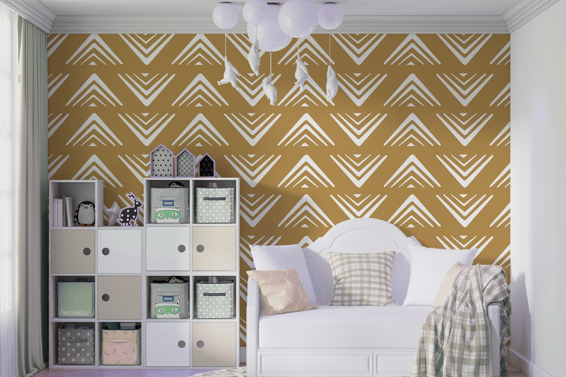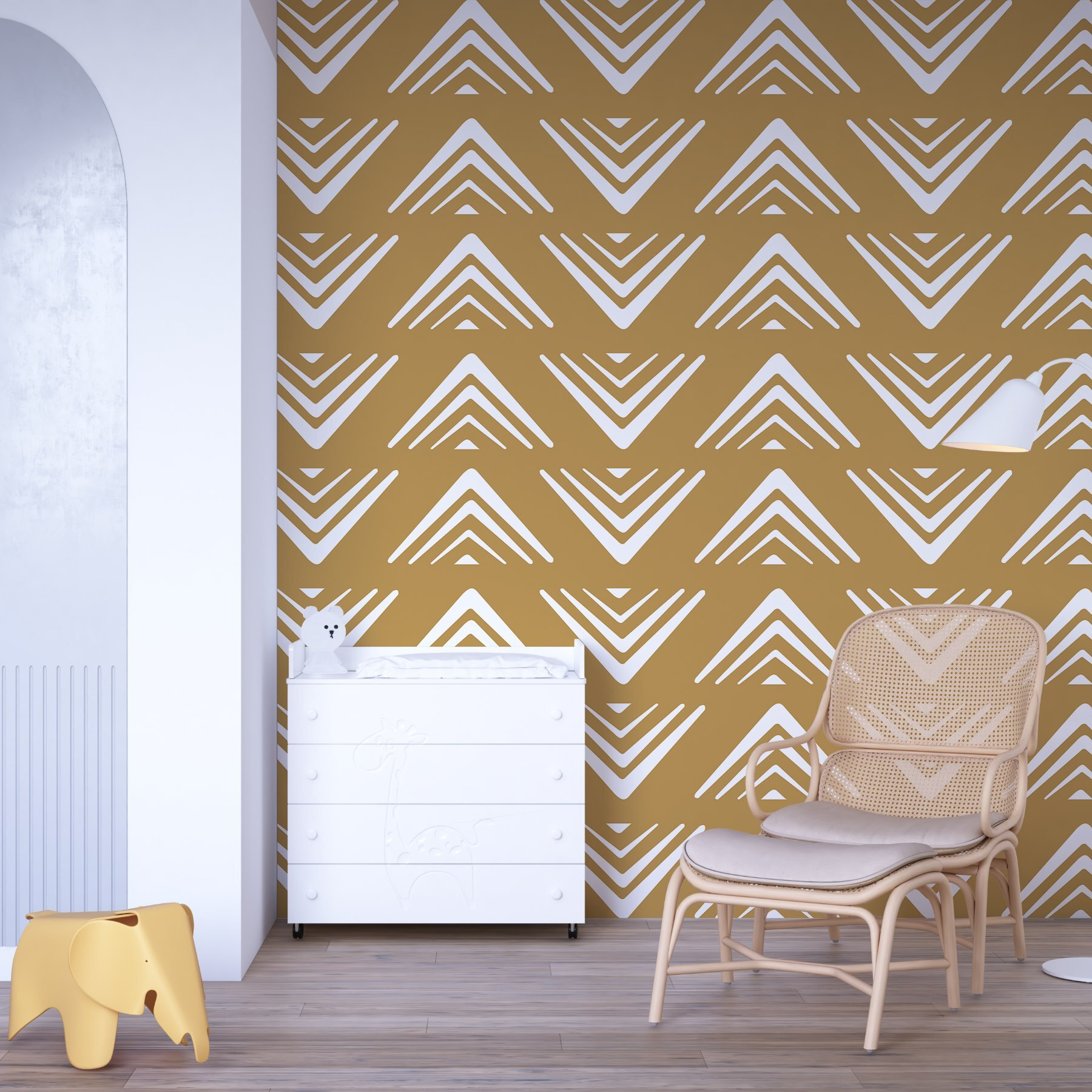Μεταμορφώστε οποιονδήποτε χώρο με αυτή τη ζωντανή τοιχογραφία τοίχου με ένα παιχνιδιάρικο μοτίβο από τρίγωνα που χορεύουν σε ένα ηλιόλουστο κίτρινο φόντο. Είναι σαν μια έκρηξη χαράς στους τοίχους, φωτίζοντας αμέσως τη διάθεση. Φανταστείτε να πίνετε τον καφέ σας σε ένα δωμάτιο που μοιάζει ζωντανό και γεμάτο ενέργεια – τι τρόπος να ξεκινήσετε τη μέρα σας! Επιπλέον, αυτές οι καθαρές γραμμές και τα γεωμετρικά σχήματα προσθέτουν μια μοντέρνα πινελιά, καθιστώντας το ιδανικό τόσο για άνετες γωνιές όσο και για κομψούς χώρους καθιστικού. Είναι το είδος της τοιχογραφίας που πυροδοτεί συζητήσεις, κάνει τους επισκέπτες να χαμογελούν και ίσως ακόμη και να εμπνέει αυτοσχέδιες χορευτικές κινήσεις. Μια βουτιά διασκέδασης, σωστά;