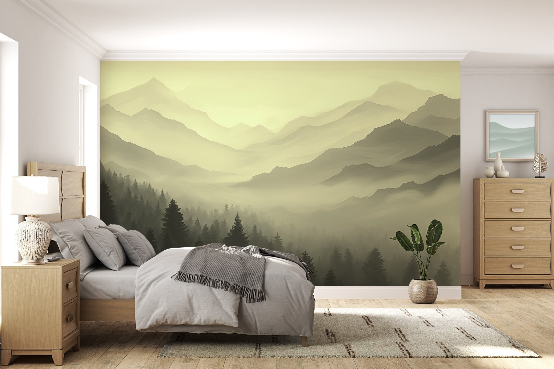 Μεταμορφώστε οποιονδήποτε τοίχο σε μια γαλήνια απόδραση με αυτή την εκπληκτική τοιχογραφία ομίχλης σε ορεινό τοπίο. Φανταστείτε να πίνετε τον καφέ σας ενώ περιβάλλεστε από πανύψηλα πεύκα και απαλές κορυφογραμμές βουνών, καθώς μια ηρεμιστική ομίχλη σας περιβάλλει – ακούγεται απολαυστικό, σωστά; Ιδανική για να δημιουργήσετε μια ζεστή γωνιά ή ένα ονειρικό σκηνικό σε ένα υπνοδωμάτιο, αυτή η τοιχογραφία ψιθυρίζει ειρήνη και ηρεμία. Είτε είστε λάτρης του βουνού είτε απλά χρειάζεστε λίγη φύση στη ζωή σας, προσφέρει μια καθημερινή υπενθύμιση της μεγάλης υπαίθρου – χωρίς τις μπότες πεζοπορίας! Επιπλέον, ποιος δεν θα ήθελε να αισθάνεται σαν να ζει μέσα σε μια καρτ ποστάλ;