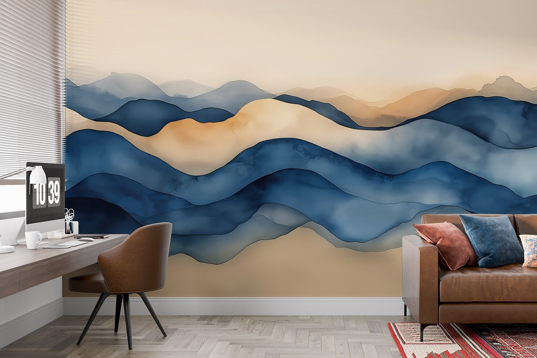 Βυθιστείτε σε μια γαλήνια απόδραση με τα “Ταπετσαρίες Blue and Tan Waves”. Αυτή η τοιχογραφία χορεύει με απαλά, τρεχούμενα κύματα σε ήρεμο μπλε και ζεστό μαυρισμένο χρώμα που ψιθυρίζουν χαλάρωση. Φανταστείτε να μπαίνετε σε ένα δωμάτιο και να σας υποδέχεται μια απαλή αύρα του ωκεανού -χωρίς την άμμο στα παπούτσια σας. Ιδανικό για ένα σαλόνι ή μια ζεστή γωνιά, μεταμορφώνει κάθε χώρο σε ένα μίνι καταφύγιο. Η αίσθηση ακουαρέλας προσθέτει μια καλλιτεχνική πινελιά που μοιάζει σχεδόν με πίνακα ζωγραφικής σε καμβά. Είναι σαν να φέρνετε ένα κομμάτι της φύσης στο εσωτερικό του σπιτιού, προκαλώντας ήρεμες δονήσεις κάθε φορά που ρίχνετε το βλέμμα σας προς το μέρος του. Σε ποιον δεν θα άρεσε μια καθημερινή υπενθύμιση για να χαλαρώσει λίγο;
