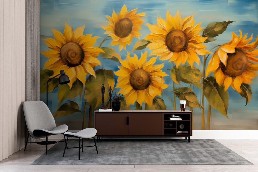 Φωτίστε κάθε δωμάτιο με αυτή την εκπληκτική τοιχογραφία τοίχου με χαρούμενα ηλιοτρόπια που χορεύουν κάτω από έναν απαλό μπλε ουρανό. Φανταστείτε να επιστρέφετε στο σπίτι μετά από μια κουραστική μέρα, μόνο για να σας υποδεχτούν τα ζωντανά κίτρινα και ζεστά πράσινα που μοιάζουν να φωνάζουν χαρά. Είναι σαν να έχετε ένα μικρό κομμάτι της φύσης μέσα στο χώρο σας. Είτε πρόκειται για μια ζεστή γωνιά είτε για έναν ζωντανό χώρο συγκέντρωσης, η τοιχογραφία προσκαλεί χαμόγελα και ζεστασιά. Φανταστείτε τους φίλους να συζητούν ή τα παιδιά να παίζουν, ενώ αυτά τα υπέροχα άνθη φυλάνε σκοπιά. Ένας τέλειος τρόπος για να προσθέσετε μια πινελιά χρώματος και να φέρετε την ύπαιθρο μέσα!
