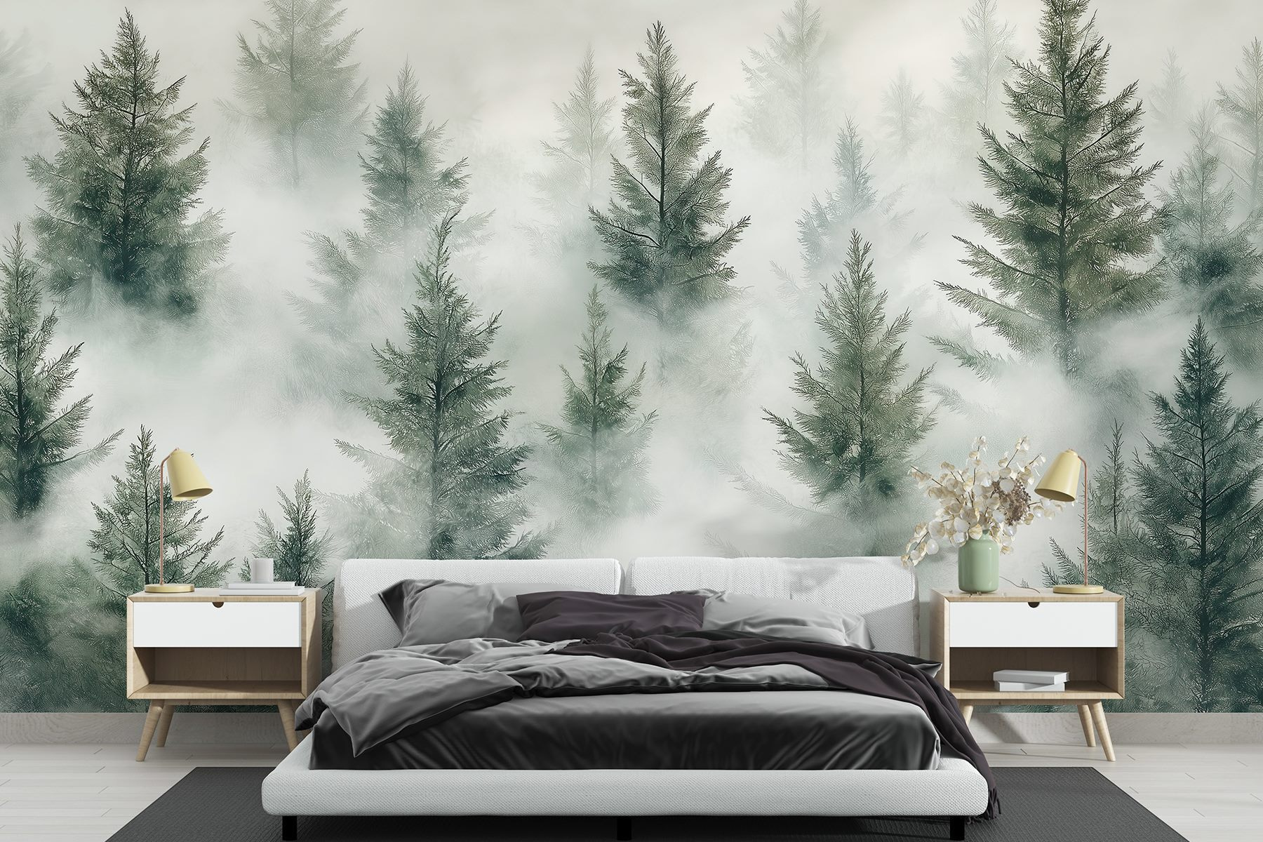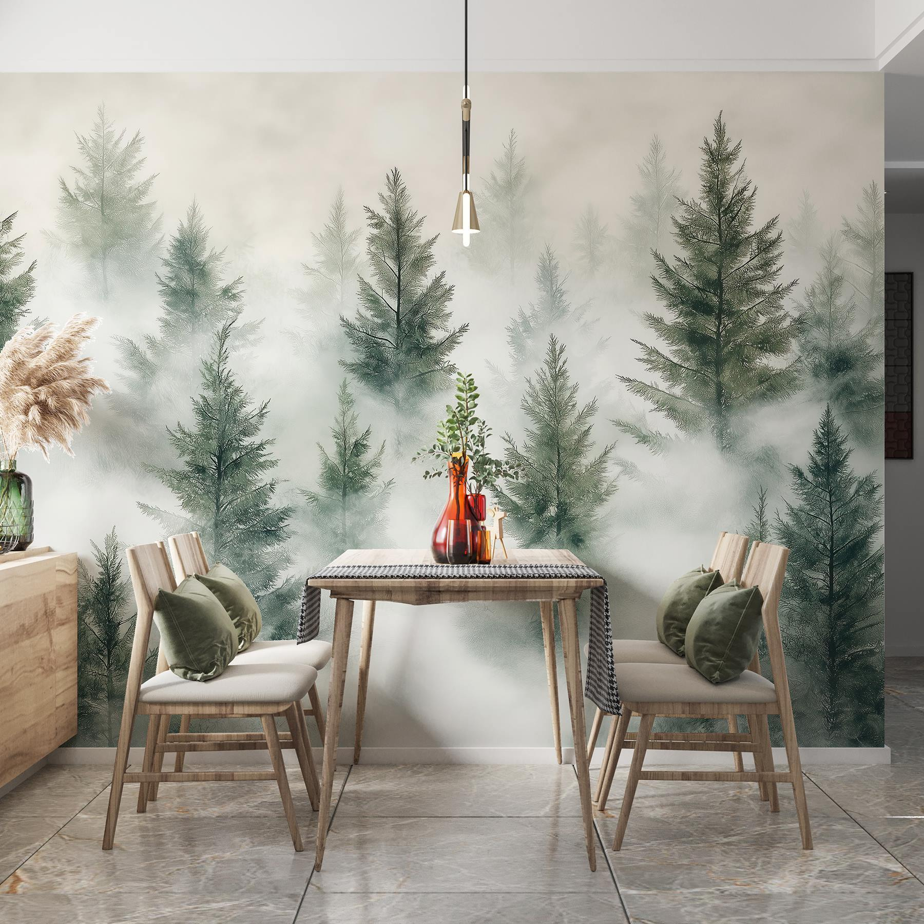 Μεταμορφώστε οποιοδήποτε δωμάτιο σε μια γαλήνια δασική απόδραση με αυτή την εκπληκτική τοιχογραφία που απεικονίζει μια πλούσια ομάδα δέντρων τυλιγμένη σε απαλή ομίχλη. Φανταστείτε να πίνετε τον πρωινό σας καφέ κοιτάζοντας αυτούς τους γίγαντες που ψιθυρίζουν, με την ομιχλώδη αγκαλιά τους να προκαλεί μια αίσθηση ηρεμίας που σας τυλίγει σαν μια ζεστή κουβέρτα. Είναι σαν να φέρνετε ένα κομμάτι της φύσης μέσα στο σπίτι σας, χωρίς τα έντομα και τη βρωμιά! Ιδανική για σαλόνια ή υπνοδωμάτια, αυτή η τοιχογραφία προσθέτει βάθος και ονειρική ατμόσφαιρα. Πραγματικά, είναι το έργο τέχνης της φύσης – δεν απαιτούνται μπότες πεζοπορίας!