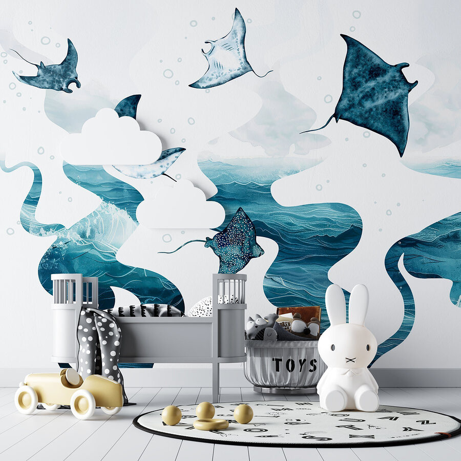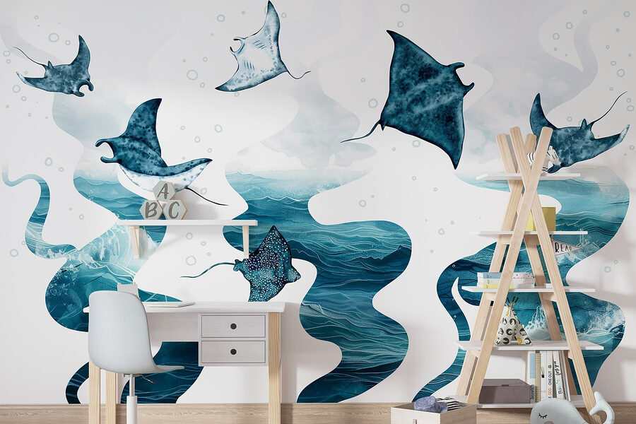 Μεταμορφώστε οποιονδήποτε χώρο σε μια γαλήνια υποβρύχια απόδραση με αυτή την εκπληκτική τοιχογραφία με σαλάχια που γλιστρούν με χάρη μέσα στο νερό. Φανταστείτε να μπαίνετε σε ένα δωμάτιο όπου τα καταπραϋντικά μπλε χρώματα δημιουργούν μια ήρεμη ατμόσφαιρα, σχεδόν σαν μια μίνι-διακοπή στο σπίτι σας. Η αβίαστη ροή του σχεδίου θα σας κάνει να ονειρεύεστε ωκεάνια κύματα και απαλές αύρες, καθιστώντας το ιδανικό για μια παραθαλάσσια γωνιά ή ένα χαλαρό σαλόνι. Επιπλέον, σε ποιον δεν αρέσουν τα σαλάχια; Είναι σαν τους ευγενικούς γίγαντες της θάλασσας, που φέρνουν μια δόση θαυμασμού και μια πινελιά προσωπικότητας στους τοίχους σας. Δεν είναι απλώς διακόσμηση- είναι μια καθημερινή υπενθύμιση της ομορφιάς της φύσης, εμπνέοντας διακριτικά χαλάρωση και ονειροπολήσεις για παραθαλάσσιες αποδράσεις. Βυθιστείτε σε αυτή την τοιχογραφία και αφήστε τη φαντασία σας να κολυμπήσει ελεύθερα!