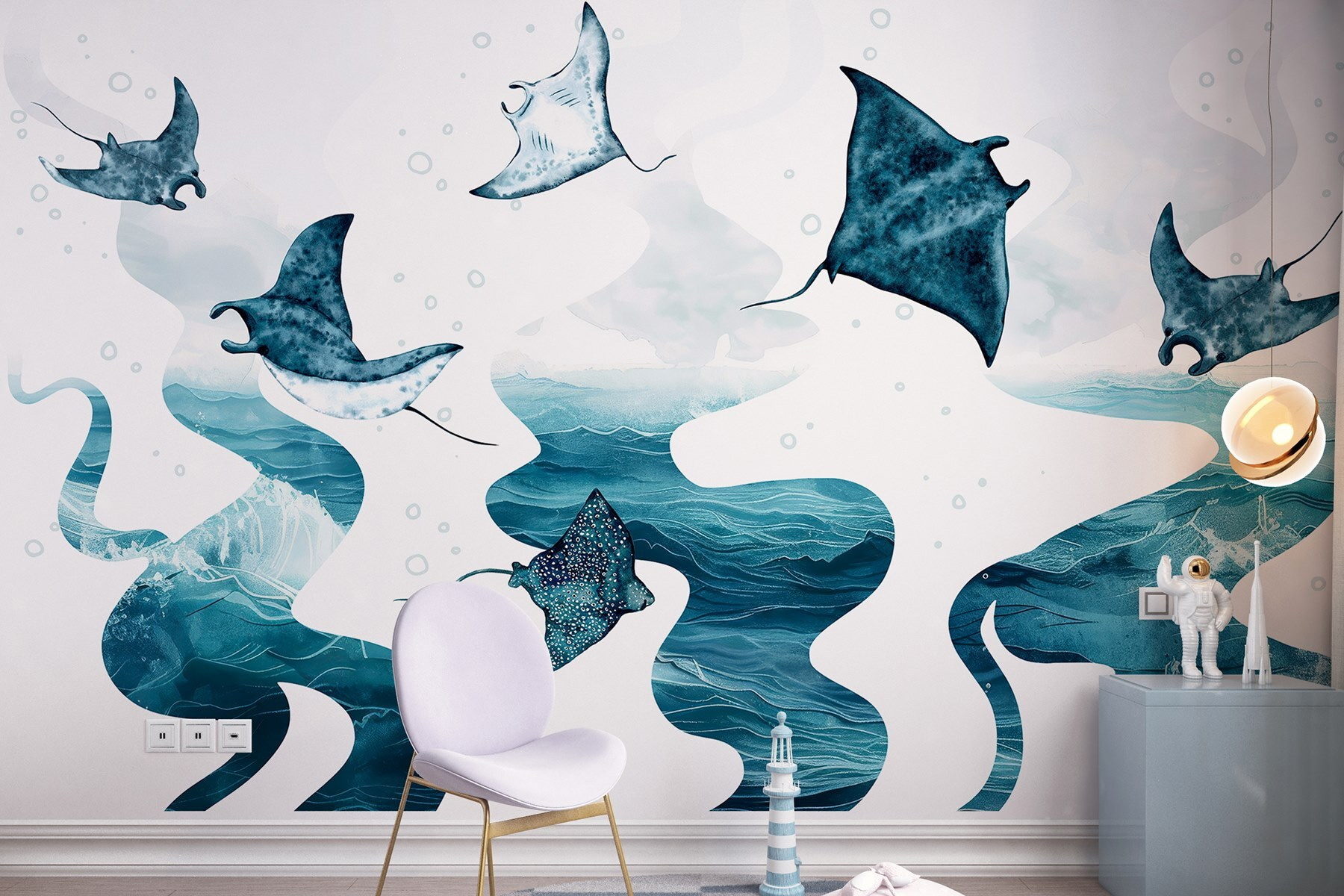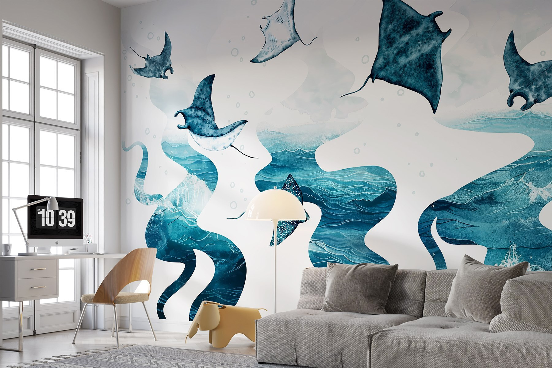 Μεταμορφώστε οποιονδήποτε χώρο σε μια γαλήνια υποβρύχια απόδραση με αυτή την εκπληκτική τοιχογραφία με σαλάχια που γλιστρούν με χάρη μέσα στο νερό. Φανταστείτε να μπαίνετε σε ένα δωμάτιο όπου τα καταπραϋντικά μπλε χρώματα δημιουργούν μια ήρεμη ατμόσφαιρα, σχεδόν σαν μια μίνι-διακοπή στο σπίτι σας. Η αβίαστη ροή του σχεδίου θα σας κάνει να ονειρεύεστε ωκεάνια κύματα και απαλές αύρες, καθιστώντας το ιδανικό για μια παραθαλάσσια γωνιά ή ένα χαλαρό σαλόνι. Επιπλέον, σε ποιον δεν αρέσουν τα σαλάχια; Είναι σαν τους ευγενικούς γίγαντες της θάλασσας, που φέρνουν μια δόση θαυμασμού και μια πινελιά προσωπικότητας στους τοίχους σας. Δεν είναι απλώς διακόσμηση- είναι μια καθημερινή υπενθύμιση της ομορφιάς της φύσης, εμπνέοντας διακριτικά χαλάρωση και ονειροπολήσεις για παραθαλάσσιες αποδράσεις. Βυθιστείτε σε αυτή την τοιχογραφία και αφήστε τη φαντασία σας να κολυμπήσει ελεύθερα!