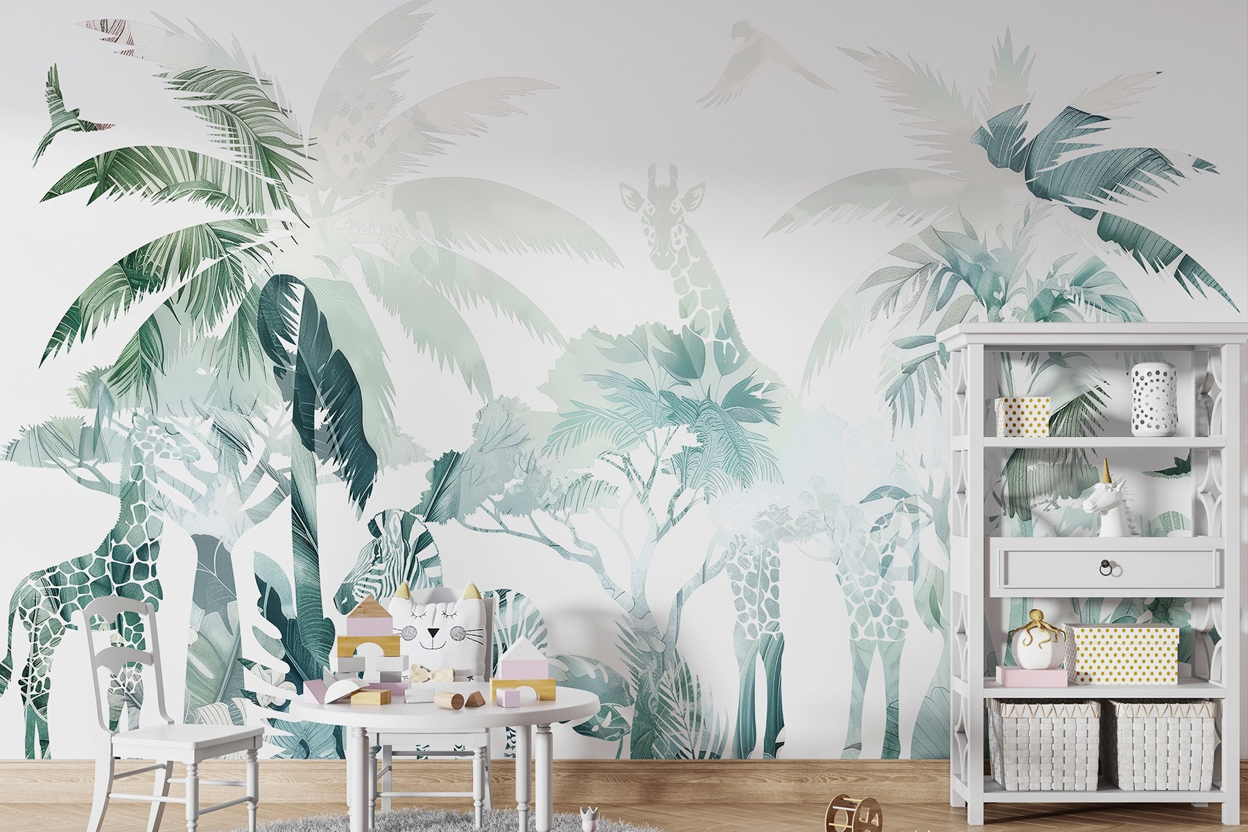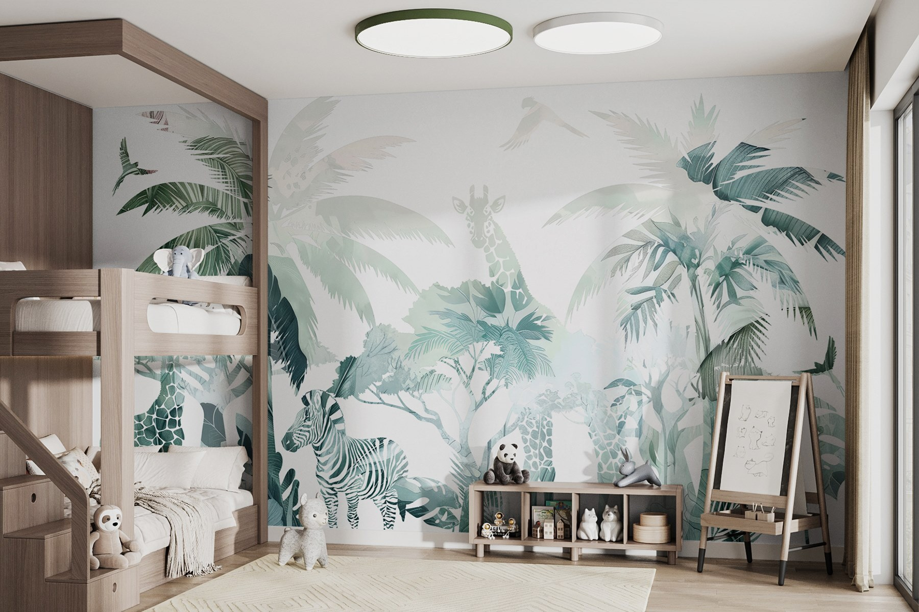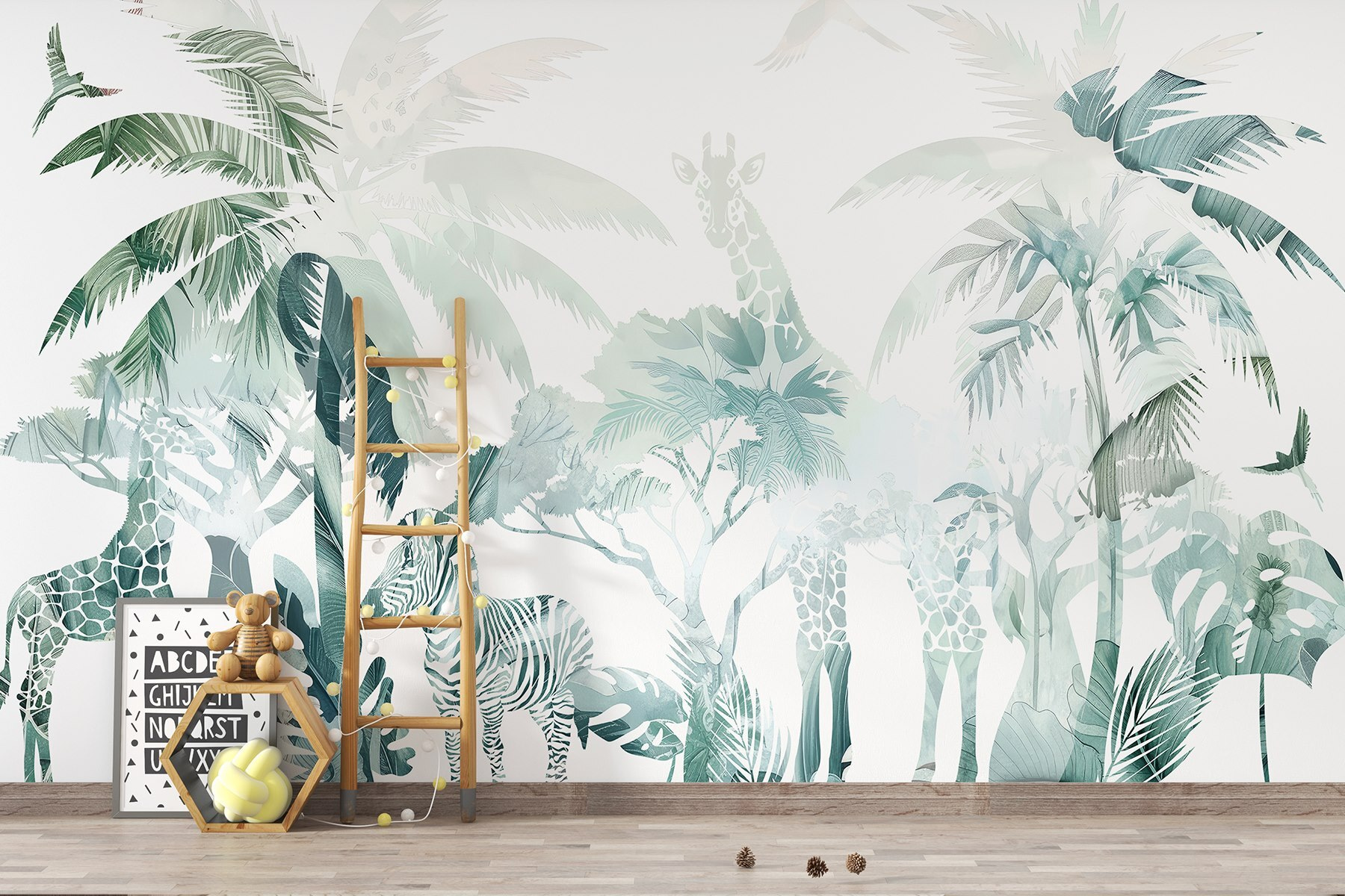 Μεταμορφώστε το χώρο σας σε μια ήρεμη απόδραση με αυτή την εκπληκτική τοιχογραφία τοίχου με μια ομάδα ζώων σε ένα καταπράσινο δάσος. Φανταστείτε να περπατάτε μέσα σε μια γαλήνια ζούγκλα κάθε μέρα – πόσο ωραίο είναι αυτό; Αυτή η τοιχογραφία συγκεντρώνει ευγενικές καμηλοπαρδάλεις, παιχνιδιάρικες ζέβρες και ζωηρούς φοίνικες, προσθέτοντας μια πινελιά από τη μαγεία της φύσης κατευθείαν στο σπίτι σας. Ιδανική για ένα άνετο σαλόνι ή ένα παιχνιδιάρικο παιδικό δωμάτιο, προσκαλεί μια αίσθηση περιπέτειας και ζεστασιάς. Επιπλέον, σκεφτείτε πόσο διασκεδαστικό θα είναι να εξηγείτε στους φίλους σας γιατί μια ζέβρα κρέμεται στο διάδρομό σας! Ένας απλός τρόπος για να πυροδοτήσετε τη φαντασία και να προκαλέσετε χαρά στην καθημερινή ζωή.