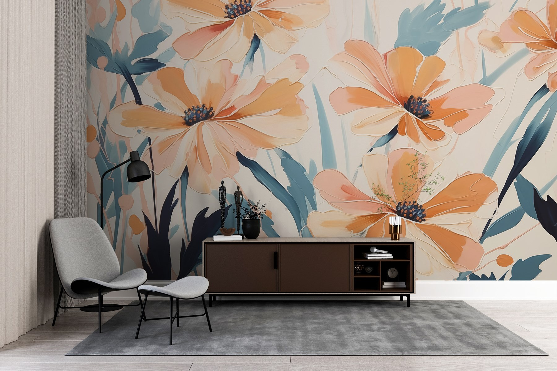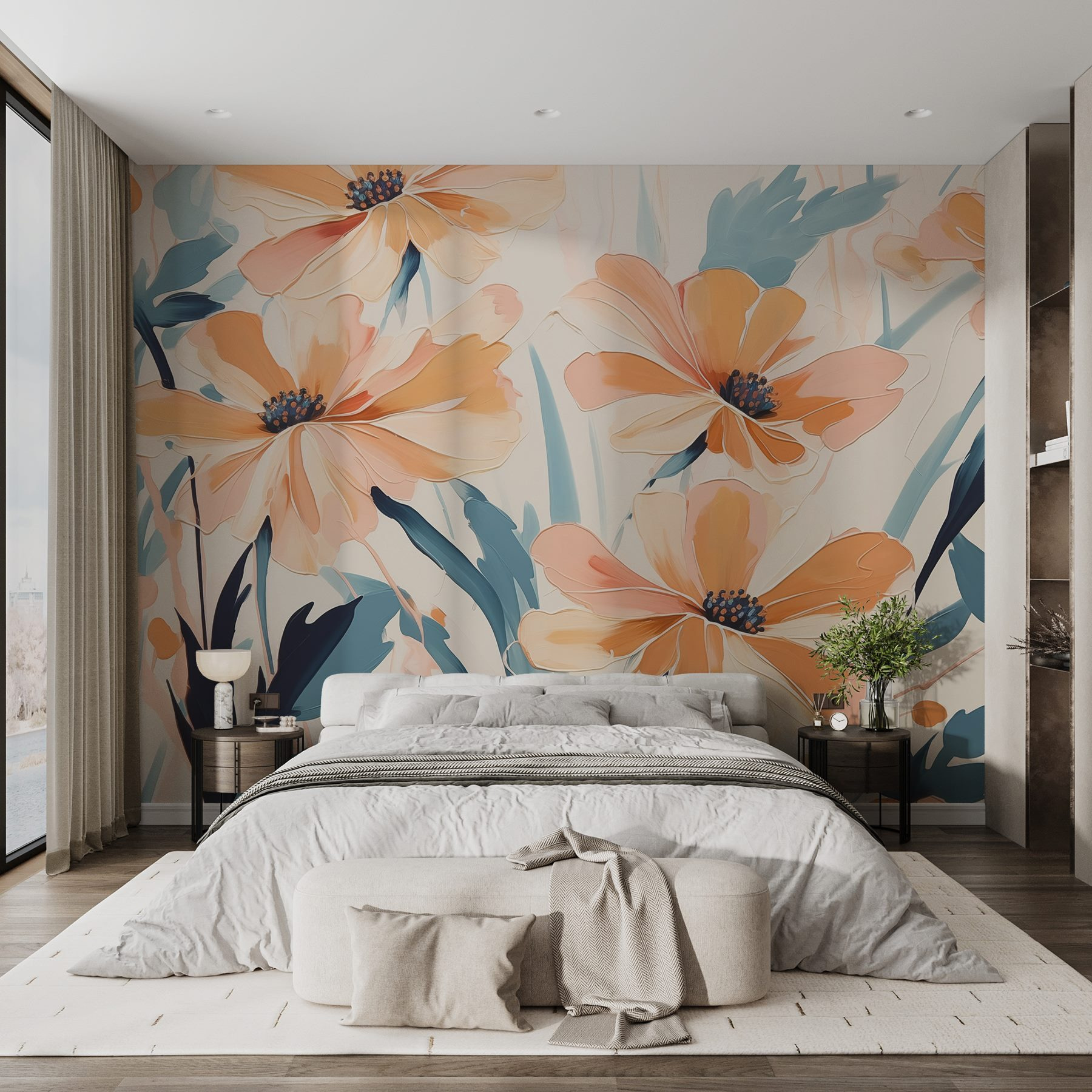 Φανταστείτε να μπαίνετε σε ένα δωμάτιο γεμάτο με ζωηρά άνθη που μοιάζουν να χορεύουν από τον τοίχο. Αυτή η τοιχογραφία, με τα λουλούδια ακουαρέλας σε απαλές αποχρώσεις του ροδακινί και του πετρόλ, μεταμορφώνει κάθε χώρο σε ένα γαλήνιο καταφύγιο κήπου. Είναι σαν να κάνετε πικνίκ σε ένα χωράφι με λουλούδια – χωρίς τα μυρμήγκια. Φανταστείτε να πίνετε τον πρωινό σας καφέ και αυτά τα πέταλα να σας ψιθυρίζουν γλυκά λόγια. Είναι ζεστό και φιλόξενο, ιδανικό για σαλόνια, υπνοδωμάτια ή οπουδήποτε χρειάζεται ένα άγγιγμα από τη γοητεία της φύσης. Μια ματιά μόνο, και νιώθετε ότι η άνοιξη είναι πάντα στην εποχή της!