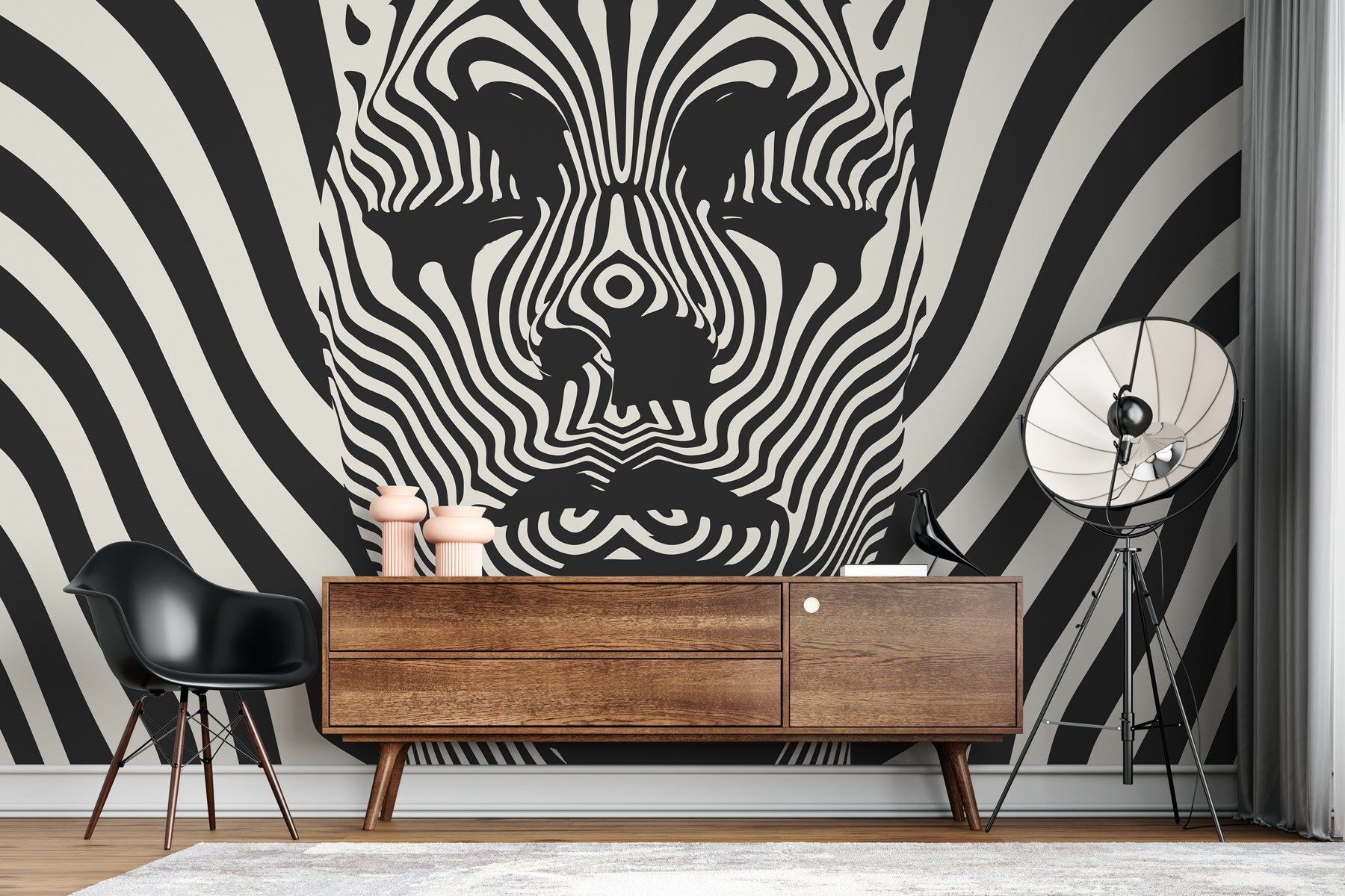 Μεταμορφώστε οποιοδήποτε δωμάτιο σε σημείο αναφοράς με αυτή την εντυπωσιακή ασπρόμαυρη τοιχογραφία. Δεν είναι απλώς ένα σχέδιο- είναι σαν ένας ιδιόρρυθμος φίλος που παρατηρεί σιωπηλά τα πάντα, αλλά σίγουρα τραβάει τα βλέμματα. Οι μαγευτικές γραμμές στροβιλίζονται γύρω από ένα διακριτικά αφηρημένο πρόσωπο, κάνοντας όποιον το κοιτάζει να σταματήσει -όπως όταν εντοπίζει ένα σύννεφο που μοιάζει ακριβώς με δεινόσαυρο.