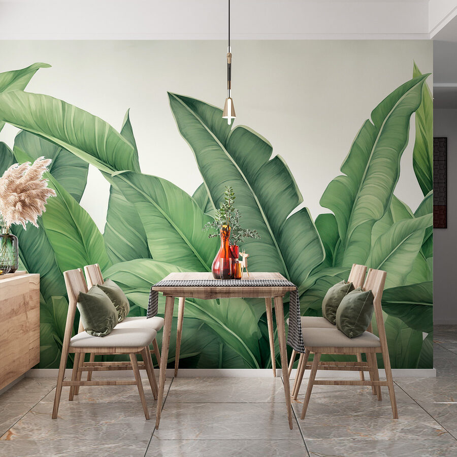 Μεταμορφώστε το χώρο σας σε μια πράσινη όαση με αυτή την υπέροχη τοιχογραφία με τα πλούσια φύλλα. Φανταστείτε να μπαίνετε σε ένα δωμάτιο που μοιάζει με τροπική απόδραση – είναι σαν να φέρνετε την ύπαιθρο στο εσωτερικό χωρίς τα ενοχλητικά ζωύφια. Τα ζωηρά πράσινα και οι φυσικές μορφές δημιουργούν μια αναζωογονητική ατμόσφαιρα, ιδανική για κάθε γωνιά που χρειάζεται ζωή. Φανταστείτε να χαλαρώνετε με ένα καλό βιβλίο ή να φιλοξενείτε μια ζεστή συγκέντρωση, περιτριγυρισμένοι από τη χαρά της φύσης. Δεν είναι απλώς διακόσμηση, είναι ατμόσφαιρα! Μια μόνο ματιά σκανδαλίζει τη χαρά. Επιπλέον, ποιος δεν θα ήθελε να αισθάνεται σαν να βρίσκεται σε μόνιμες διακοπές;