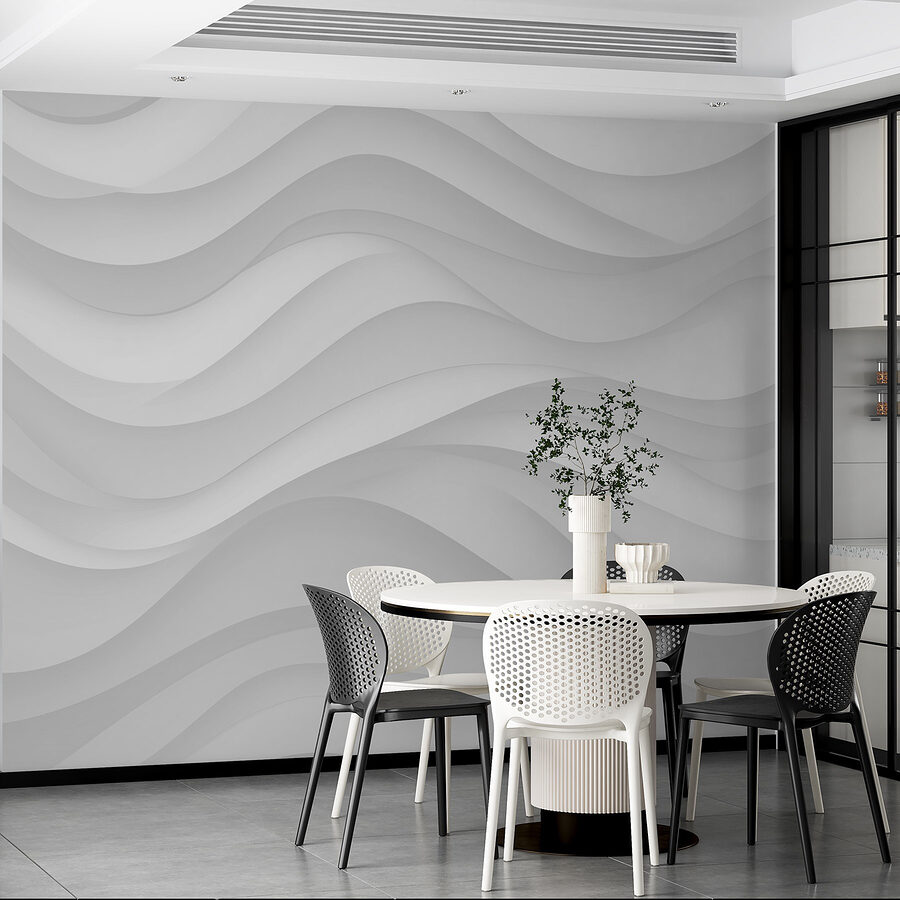 Φανταστείτε να μπαίνετε σε ένα δωμάτιο όπου οι τοίχοι μοιάζουν να ρέουν σαν ένα απαλό αεράκι – αυτή η τοιχογραφία κάνει ακριβώς αυτό! Με τα απαλά λευκά και γκρι κύματα, δημιουργεί μια γαλήνια ατμόσφαιρα που μοιάζει σύγχρονη και ταυτόχρονα ζεστή. Είναι ιδανική για εκείνες τις στιγμές που θέλετε να χαλαρώσετε, ίσως με ένα καλό βιβλίο ή ένα φλιτζάνι τσάι. Φανταστείτε το εξής: οι καλεσμένοι μπαίνουν μέσα, σταματούν για να θαυμάσουν τον κομψό σχεδιασμό και ξαφνικά το δωμάτιο μοιάζει με μια κομψή γκαλερί. Αυτό δεν είναι απλώς μια ταπετσαρία, είναι μια δήλωση! Σίγουρο wow-factor για κάθε χώρο, και ας είμαστε ειλικρινείς – το τέλειο σκηνικό για την επόμενη φωτογραφία σας στο Instagram!