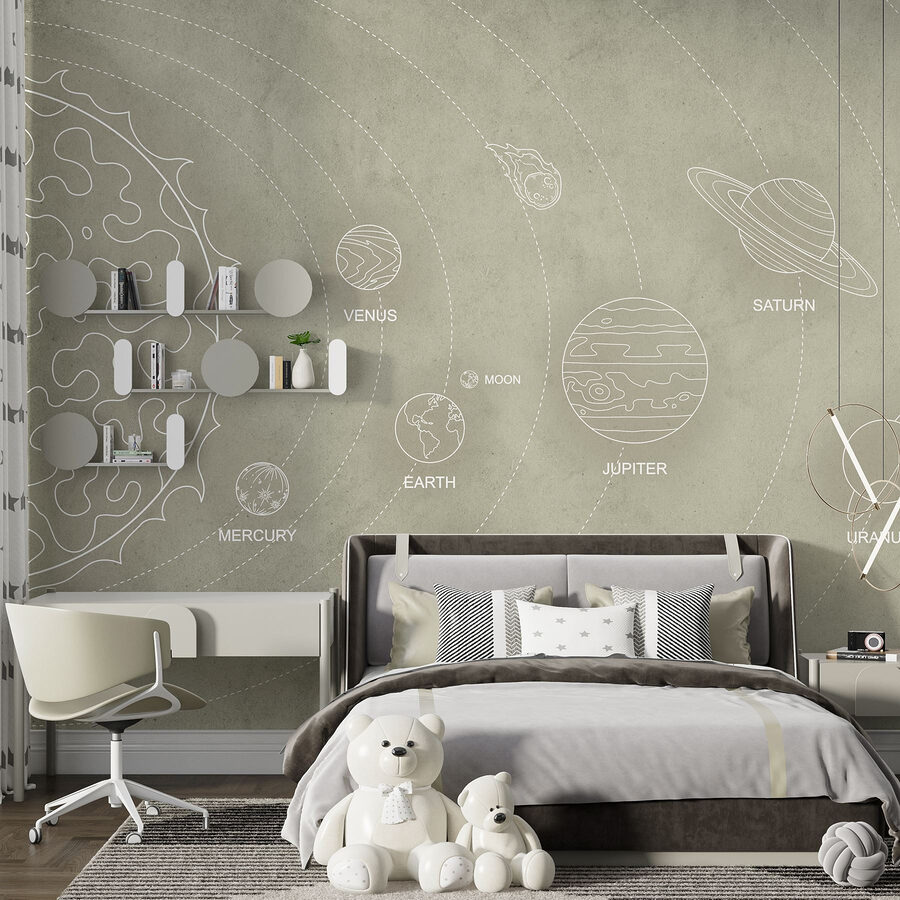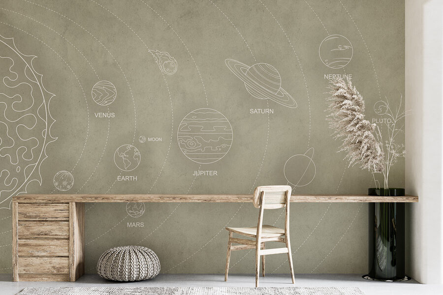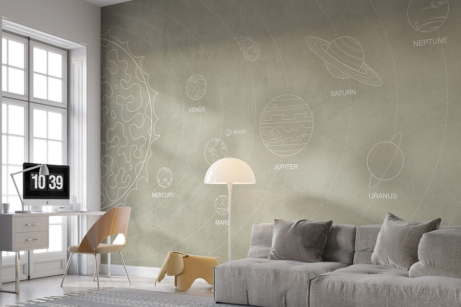 Μεταμορφώστε το χώρο σας σε μια κοσμική χώρα θαυμάτων με αυτή την τοιχογραφία “Διάγραμμα των πλανητών”. Φανταστείτε να μπαίνετε σε ένα δωμάτιο όπου ο Ερμής, η Αφροδίτη, ακόμα και ο Πλούτωνας απλά χαλαρώνουν στον τοίχο σαν να τους ανήκει ο χώρος. Είναι σαν να έχετε μια θέση στην πρώτη σειρά για το σύμπαν – χωρίς να χρειάζεστε διαστημόπλοιο! Οι καθαρές γραμμές και οι καταπραϋντικοί τόνοι αυτής της τοιχογραφίας την καθιστούν ιδανική για ένα γραφείο, ένα παιδικό δωμάτιο ή οπουδήποτε αλλού χρειάζεται μια πινελιά ουράνιας μαγείας. Είτε είστε λάτρης της αστρονομίας είτε απλά αγαπάτε μια καλή αστρική ατμόσφαιρα, αυτή η τοιχογραφία κεντρίζει την περιέργεια και προσκαλεί σε ονειροπολήσεις για μακρινούς γαλαξίες. Φανταστείτε τα μικρά παιδιά να δείχνουν τον Άρη και να ρωτούν αν μπορούν να τον επισκεφθούν. Δεν είναι απλώς διακόσμηση, είναι ένα εισιτήριο για ένα σύμπαν γεμάτο φαντασία.