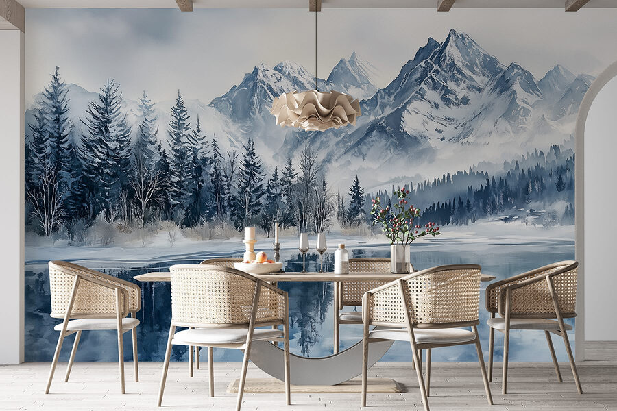 Μεταμορφώστε το χώρο σας σε μια χειμερινή χώρα θαυμάτων με αυτή την εκπληκτική τοιχογραφία μιας γαλήνιας λίμνης που περιβάλλεται από χιονισμένα βουνά και δέντρα. Το απαλό εφέ ακουαρέλας προσκαλεί μια ήρεμη ατμόσφαιρα, ιδανική για να βολευτείτε με ένα φλιτζάνι τσάι ή να προσποιηθείτε ότι είστε δασοφύλακας για μια μέρα. Φανταστείτε να παρακολουθείτε το φως του ήλιου να χορεύει στο νερό, ενώ αυτές οι κορυφές σας κρατούν συντροφιά. Είναι ένα μικρό κομμάτι της φύσης ακριβώς στο σαλόνι σας. Επιπλέον, το χιόνι έχει κάτι που κάνει τα πάντα να μοιάζουν φρέσκα και γαλήνια. Ποιος δεν θα το ήθελε αυτό; Κάντε τους τοίχους σας έναν καμβά για όνειρα και χαθείτε στην ομορφιά του χειμώνα, όλο το χρόνο!