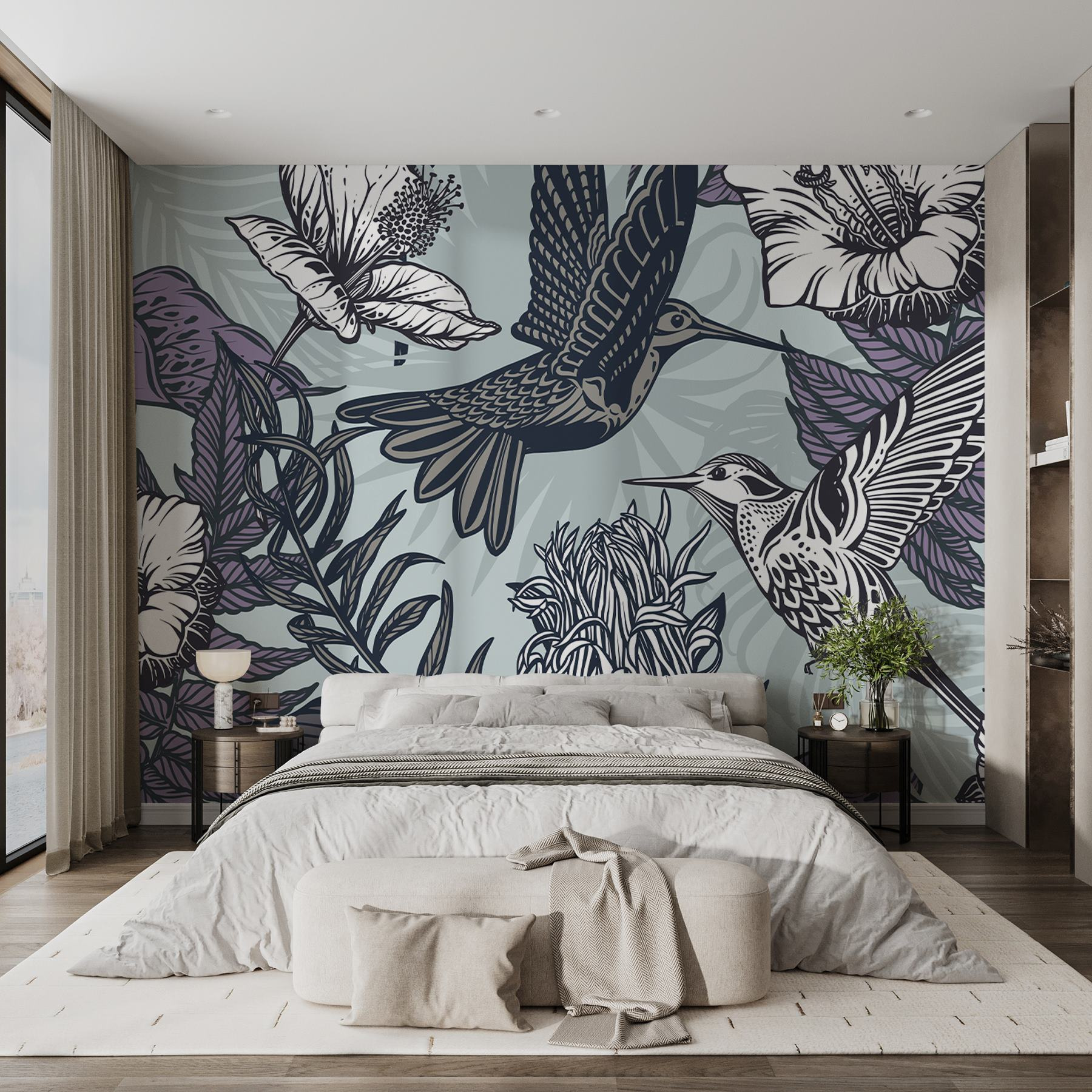 Μεταμορφώστε το χώρο σας με αυτή τη μαγευτική τοιχογραφία με πουλιά που πετούν δίπλα σε ζωντανά λουλούδια. Είναι σαν να προσκαλείτε τη φύση κατευθείαν στο σπίτι σας – δεν απαιτείται βρώμικη κηπουρική! Φανταστείτε να πίνετε τον πρωινό σας καφέ, ενώ αυτά τα γοητευτικά πουλάκια φαίνεται να πετούν στους τοίχους σας, φέρνοντας μια βουτιά χρωμάτων που χορεύουν στο δωμάτιό σας. Το καταπραϋντικό σκηνικό κάνει κάθε μέρα να μοιάζει με τροπική απόδραση. Επιπλέον, είναι ένα εξαιρετικό στοιχείο για συζήτηση – ποιος δεν θα ήθελε να συζητήσει για μια τοιχογραφία που φέρνει λίγο από την άγρια φύση μέσα στο σπίτι; Προχωρήστε, αφήστε τους τοίχους σας να διηγηθούν μια ιστορία!