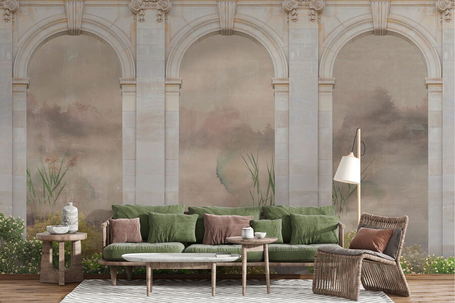 Μεταμορφώστε κάθε χώρο με τη μαγευτική τοιχογραφία “Πέτρινες αψίδες με φυτά και θάμνους”. Φανταστείτε να μπαίνετε σε έναν γαλήνιο κήπο μέσα από μεγάλες καμάρες, όπου τα απαλά πράσινα και τα ντελικάτα άνθη φέρνουν μια πινελιά φύσης στους εσωτερικούς χώρους. Μοιάζει με μια μυστική απόδραση, ιδανική για να ονειροπολήσετε ή να πιείτε τον καφέ σας στη ζεστή γωνιά σας. Οι φίλοι μπορεί να σταματήσουν και να κοιτάξουν, αναρωτώμενοι αν έχετε μετατρέψει το σπίτι σας σε μια κρυφή όαση. Οι πολυεπίπεδες υφές και οι απαλές αποχρώσεις προσκαλούν σε ήρεμη ατμόσφαιρα – όχι πια βαρετοί τοίχοι! Είναι μια ευχάριστη υπενθύμιση ότι λίγη φύση μπορεί να προκαλέσει μεγάλη χαρά, ακριβώς στο σαλόνι σας.