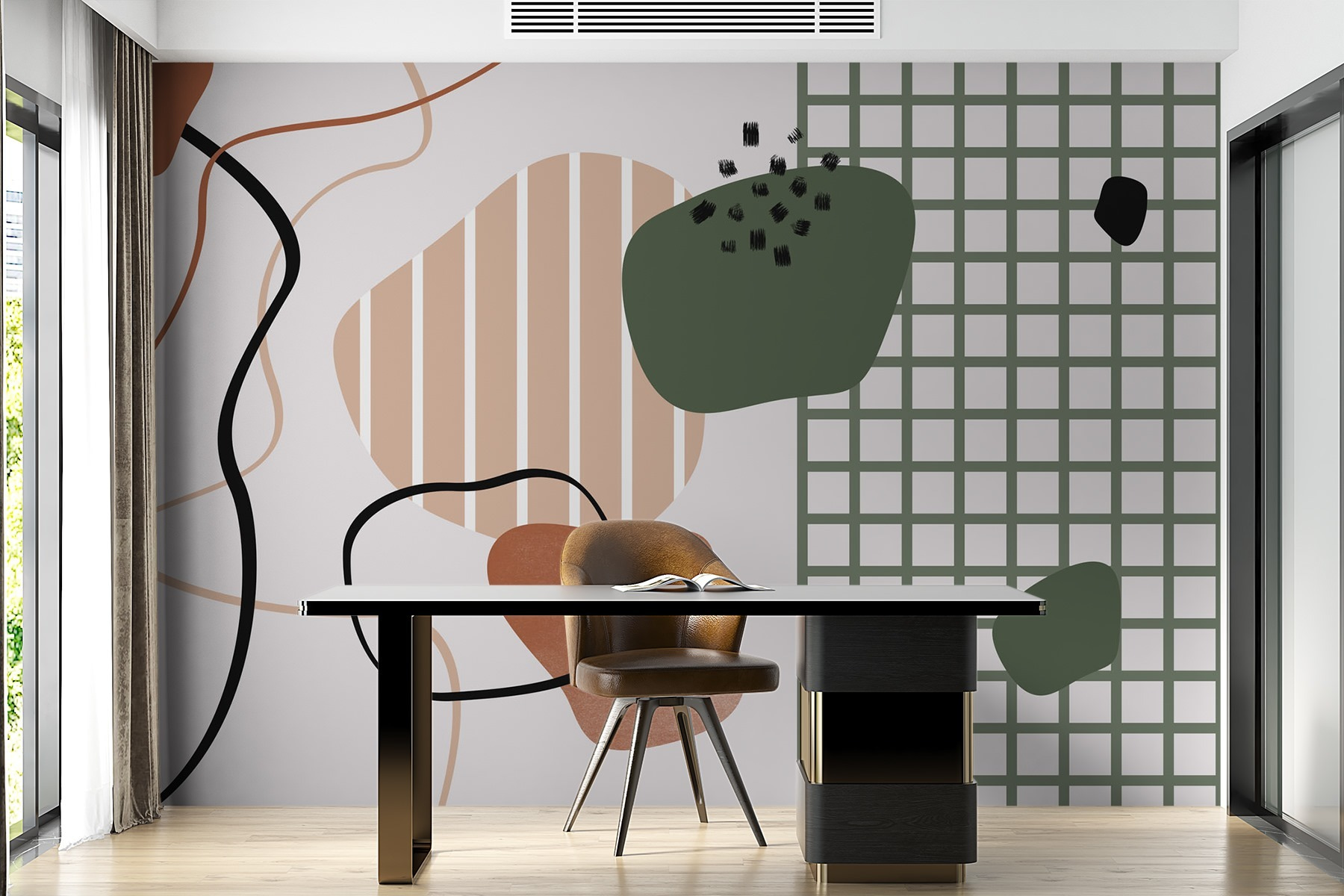 Μεταμορφώστε οποιονδήποτε χώρο με αυτή τη ζωντανή τοιχογραφία τοίχου, με πολύχρωμα μοτίβα σε ένα κομψό φόντο. Αυτές οι παιχνιδιάρικες μαύρες γραμμές και τελείες χορεύουν γύρω σας σαν να έχουν το δικό τους μικρό πάρτι – σοβαρά, ποιος δεν θα ήθελε τέτοιου είδους ατμόσφαιρα; Φανταστείτε να μπαίνετε σε ένα δωμάτιο και να σας υποδέχεται αυτή η έκρηξη δημιουργικότητας- είναι σαν να έχετε έναν χαρούμενο φίλο που σας εμπνέει. Ιδανική για ένα άνετο σαλόνι ή έναν κομψό χώρο εργασίας, αυτή η τοιχογραφία προσθέτει μια αναζωογονητική πινελιά. Σας θυμίζει κάπως να αγκαλιάζετε τη διασκέδαση στην καθημερινότητα, σωστά; Οι τοίχοι σας θα σας ευχαριστήσουν!