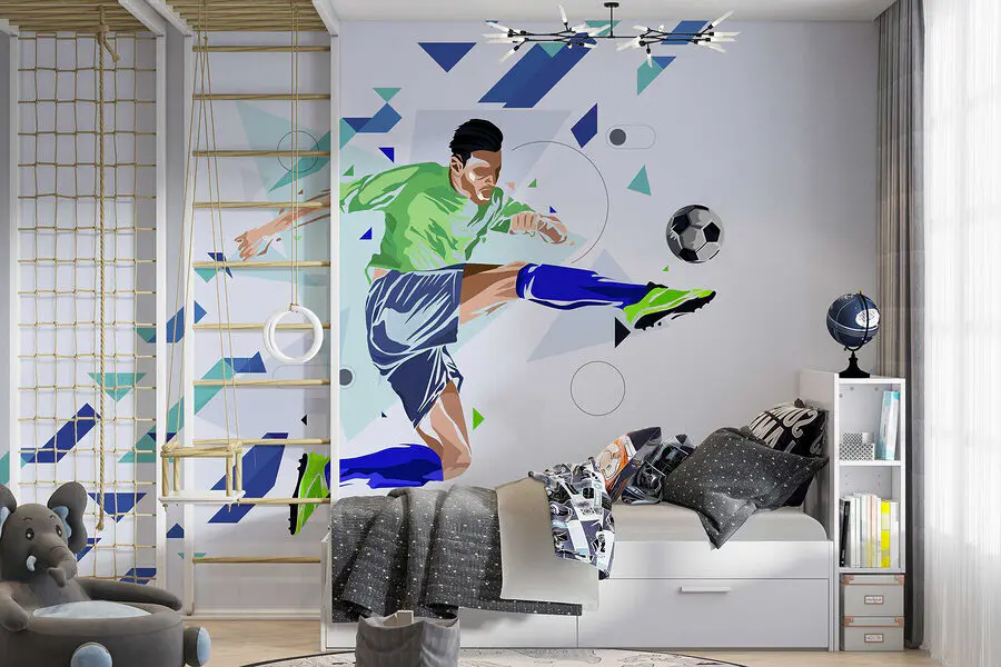 Μεταμορφώστε οποιονδήποτε χώρο σε μια ζωντανή αρένα με αυτή την εντυπωσιακή τοιχογραφία ενός νεαρού άνδρα που κλωτσάει μια μπάλα ποδοσφαίρου. Δεν είναι απλώς ένα κομμάτι διακόσμησης – είναι μια στιγμή παγωμένη στο χρόνο, που αποτυπώνει την ενέργεια και το πάθος του παιχνιδιού. Φανταστείτε αυτή την τοιχογραφία να κοσμεί ένα σαλόνι ή ένα δωμάτιο παιχνιδιών, εμπνέοντας νυχτερινούς αγώνες και φιλικά πειράγματα. Τα δυναμικά χρώματα και τα γεωμετρικά σχήματα προσθέτουν μια μοντέρνα πινελιά που αναβαθμίζει αμέσως την ατμόσφαιρα. Είτε χαλαρώνετε με φίλους είτε απλά ονειρεύεστε εκείνο το ακατόρθωτο γκολ, αυτή η τοιχογραφία προσδίδει μια ηλεκτρική ατμόσφαιρα που σίγουρα θα σας δώσει χαρά και ίσως και λίγο κίνητρο. Σημειώστε πολλά στο στυλ!
