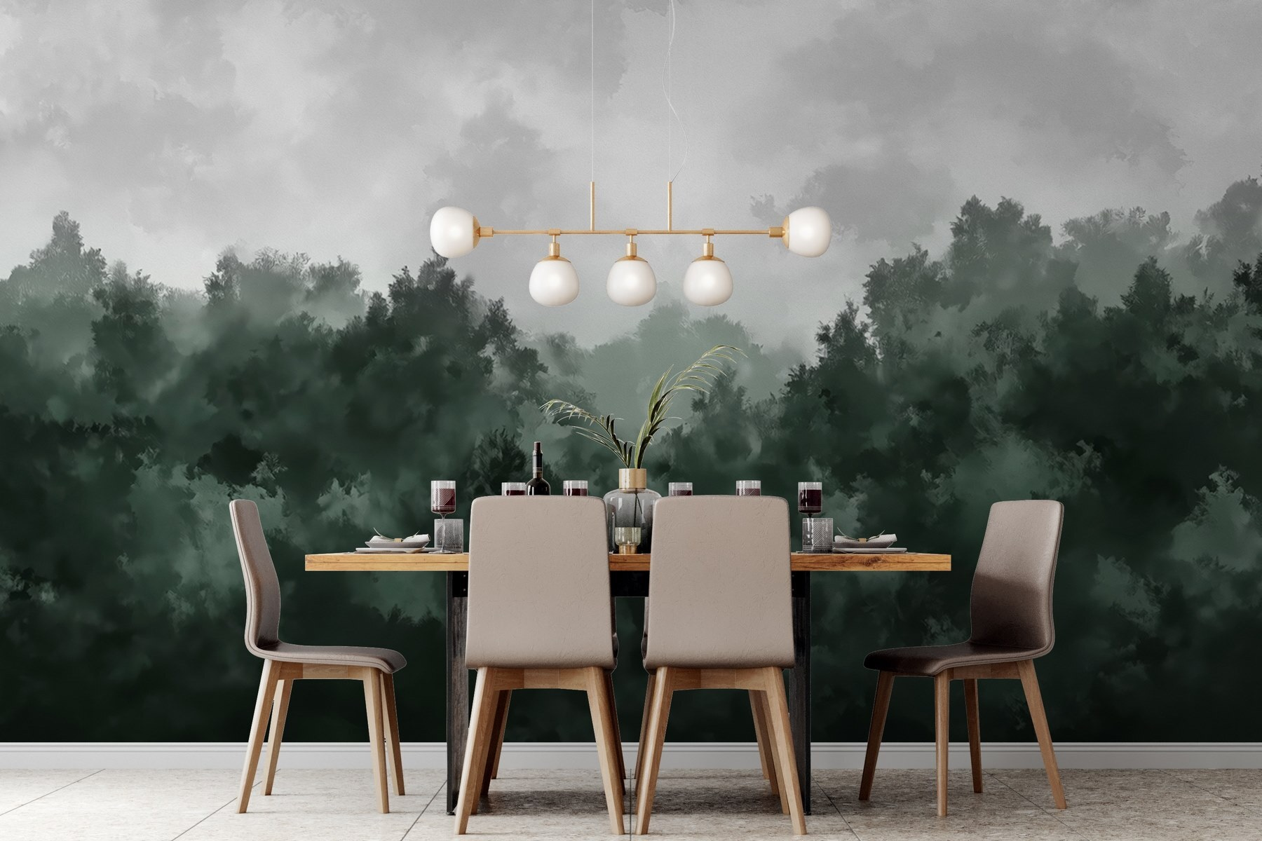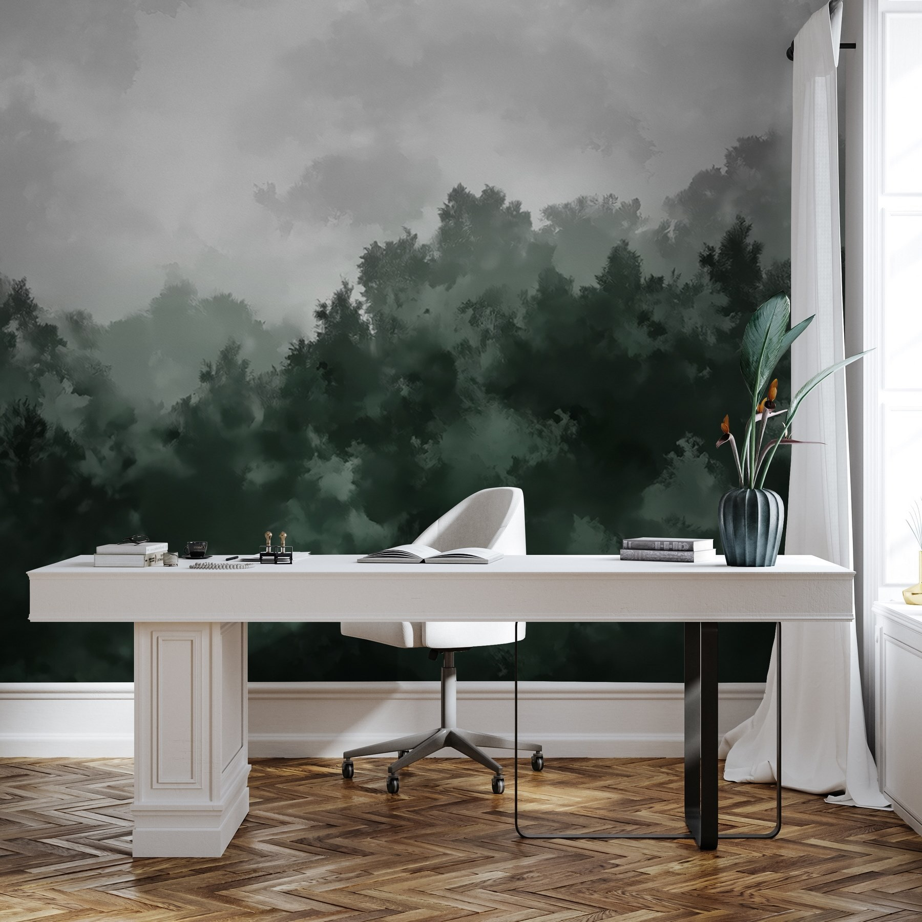 Μεταμορφώστε οποιοδήποτε δωμάτιο σε μια γαλήνια απόδραση με αυτή την εκπληκτική τοιχογραφία “Foggy Forest”. Φανταστείτε να μπαίνετε στο χώρο σας και να σας υποδέχονται οι απαλές ψίθυρες των δέντρων που είναι τυλιγμένα στην ομίχλη. Είναι σαν να μπαίνετε σε μια ζεστή άγρια φύση, όπου κάθε ματιά προσκαλεί σε ηρεμία. Τα βαθιά πράσινα και τα απαλά γκρι χρώματα δημιουργούν μια ηρεμιστική ατμόσφαιρα, ιδανική για να χαλαρώσετε μετά από μια κουραστική μέρα. Ή φανταστείτε μια συγκέντρωση με φίλους – αυτή η τοιχογραφία θα προκαλέσει συζητήσεις για την ομορφιά της φύσης. Είναι κάτι περισσότερο από διακόσμηση- είναι μια διάθεση. Φέρτε ένα άγγιγμα από την ύπαιθρο μέσα στο σπίτι και αφήστε τους τοίχους σας να αναπνεύσουν ζωή!