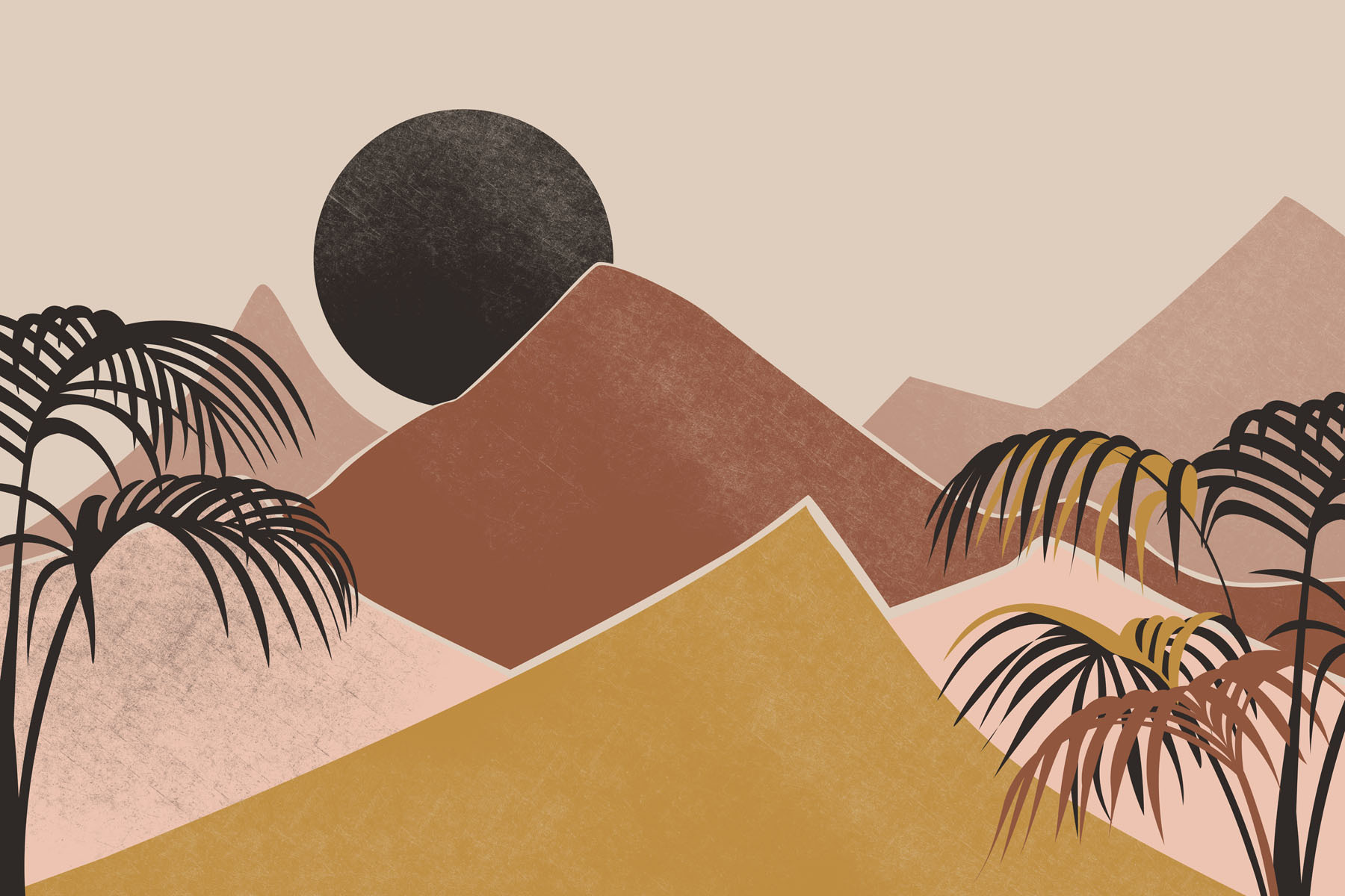 Μεταμορφώστε οποιοδήποτε δωμάτιο με αυτή την εκπληκτική τοιχογραφία τοίχου, “Τοπίο με φοίνικες και βουνά”. Φανταστείτε να μπαίνετε σε μια ζεστή απόδραση κάθε φορά που την κοιτάτε. Οι ζεστοί, γήινοι τόνοι σε συνδυασμό με τις σιλουέτες των φοινικόδεντρων που λικνίζονται, το καθιστούν ένα τέλειο σκηνικό για ονειροπολήσεις από μακρινά μέρη. Αυτή η τοιχογραφία ψιθυρίζει “vibes διακοπών” και κάνει θαύματα σε ένα σαλόνι, υπνοδωμάτιο ή ακόμη και σε μια δημιουργική γωνιά. Αισθάνεται σαν μια απαλή αγκαλιά από τη φύση, ακριβώς στο σπίτι σας. Επιπλέον, αυτά τα βουνά υπόσχονται περιπέτειες χωρίς ποτέ να αφήσετε τον καναπέ – ποιος θα μπορούσε να αντισταθεί;