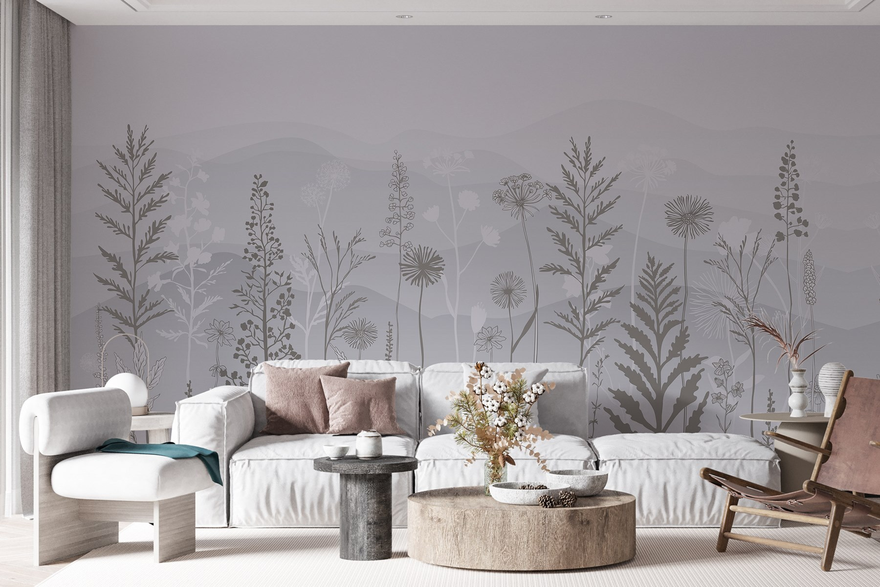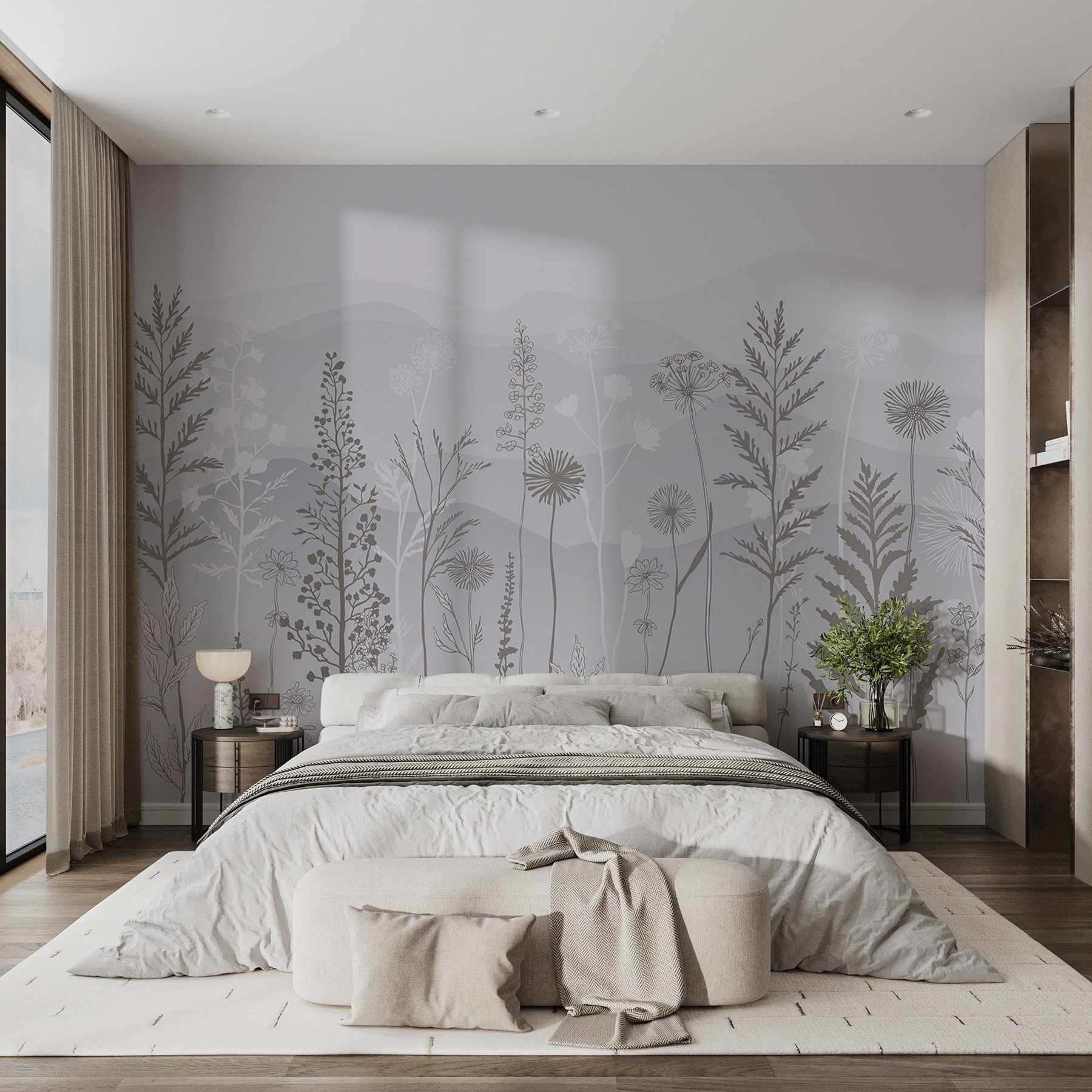Μεταμορφώστε οποιονδήποτε χώρο με αυτή την εκπληκτική τοιχογραφία τοίχου με ένα ονειρικό γκρι και λευκό φόντο πασπαλισμένο με λεπτεπίλεπτα φυτά και ευγενικά βουνά. Φανταστείτε να μπαίνετε σε μια γαλήνια μικρή όαση ακριβώς στο σαλόνι ή την κρεβατοκάμαρά σας – μια ανάσα φρέσκου αέρα χωρίς την ταλαιπωρία της πραγματικής κηπουρικής. Τα απαλά χρώματα προσκαλούν ήρεμες δονήσεις, ιδανικές για χαλάρωση μετά από μια κουραστική μέρα. Σκεφτείτε άνετες συγκεντρώσεις, όπου οι φίλοι θαυμάζουν την κομψή διακόσμησή σας, ενώ εσείς θα πίνετε τσάι και θα απολαμβάνετε την ειρηνική ατμόσφαιρα. Είναι σαν να φέρνετε ένα κομμάτι της φύσης στο σπίτι, χωρίς τα ζωύφια! Αναβαθμίστε τους τοίχους σας και αφήστε τη δημιουργικότητά σας να ανθίσει.