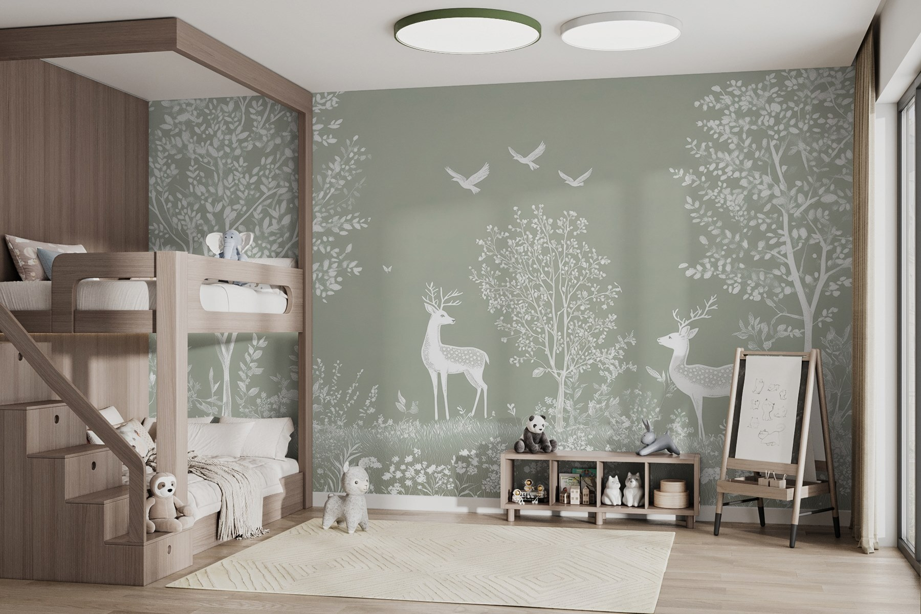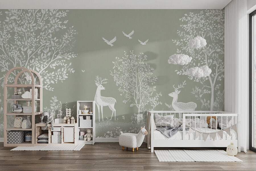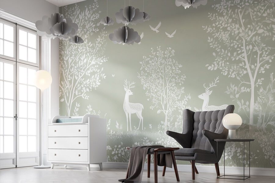 Φανταστείτε να μπαίνετε σε ένα γαλήνιο δάσος, όπου η απαλή ομορφιά της φύσης σας καλεί να σταματήσετε. Αυτή η τοιχογραφία, με τα χαριτωμένα λευκά ελάφια και τα παιχνιδιάρικα πουλιά ανάμεσα σε καταπράσινα δέντρα, κάνει ακριβώς αυτό – μεταμορφώνει κάθε δωμάτιο σε ένα ηρεμιστικό καταφύγιο. Οι απαλές αποχρώσεις δημιουργούν μια αέρινη αίσθηση, καθιστώντας την ιδανική για φιλόξενους χώρους ή μια ήσυχη γωνιά ανάγνωσης. Φανταστείτε να πίνετε τσάι ενώ ονειρεύεστε περιπέτειες στο δάσος ή ακούτε το θρόισμα των φύλλων. Είναι σαν να φέρνετε ένα κομμάτι της φύσης μέσα στο σπίτι, χωρίς τα κουνούπια! Ένας εύκολος τρόπος για να πασπαλίσετε λίγη ιδιοτροπία και ηρεμία στην καθημερινή ζωή. Ιδανικό για τους λάτρεις της φύσης ή για οποιονδήποτε χρειάζεται μια μικρή απόδραση.