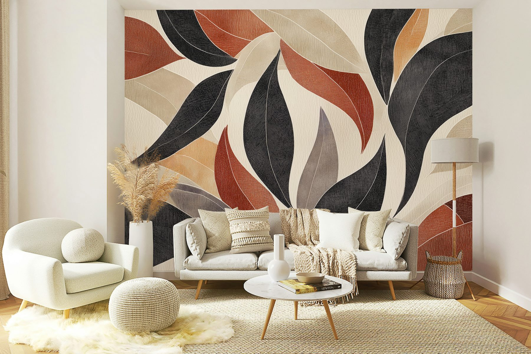 Μεταμορφώστε το χώρο σας με την τοιχογραφία “Δυναμικά φύλλα σε γήινους τόνους”! Αυτό το εκπληκτικό σχέδιο στροβιλίζεται με πλούσια κόκκινα, ζεστά μαύρα και απαλά κρεμ χρώματα – ιδανικό για να δώσει ζωή σε οποιονδήποτε τοίχο. Φανταστείτε να πίνετε τσάι και απλά να κοιτάζετε αυτά τα φύλλα, αφήνοντας τις γήινες δονήσεις να σας πλημμυρίσουν. Είναι σαν μια απαλή υπενθύμιση της ομορφιάς της φύσης, ακριβώς στο σπίτι σας. Ιδανικό για μια ζεστή γωνιά ανάγνωσης ή για εκείνον τον κενό τοίχο που ζητιανεύει για προσοχή. Επιπλέον, μπορούμε να μιλήσουμε για το πώς κάνει αμέσως κάθε δωμάτιο να αισθάνεται πιο φιλόξενο; Η διακόσμηση εμπνευσμένη από τη φύση δεν γίνεται καλύτερη από αυτό!