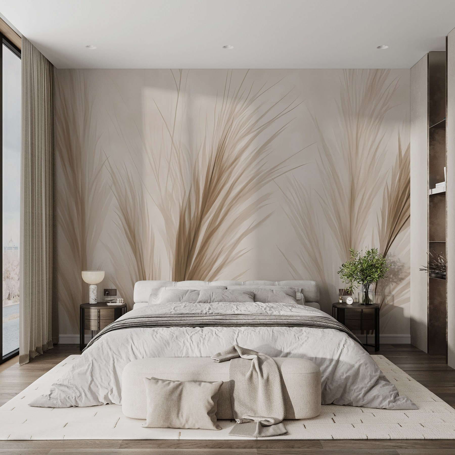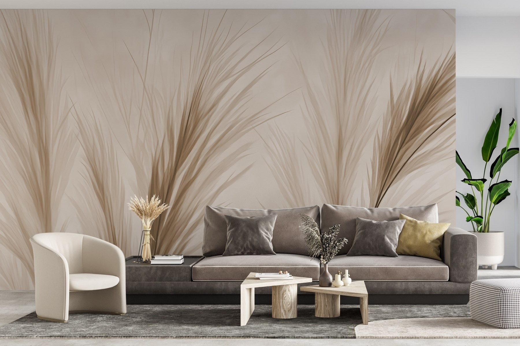Φανταστείτε να μπαίνετε σε ένα άνετο δωμάτιο όπου σας περιβάλλει ο απαλός ψίθυρος της φύσης. Αυτή η τοιχογραφία, με τις απαλές μπεζ σιλουέτες γρασιδιού, φέρνει μια πινελιά γαλήνιας κομψότητας σε κάθε χώρο. Είναι σαν μια ζεστή αγκαλιά από την ίδια τη Μητέρα Φύση – τέλεια για εκείνες τις μέρες που είστε κολλημένοι σε εσωτερικούς χώρους, αλλά αποζητάτε την ύπαιθρο. Φανταστείτε να πίνετε τσάι ενώ ονειρεύεστε ηλιόλουστα λιβάδια, ή ίσως να φιλοξενείτε φίλους που θα επαινέσουν την κομψή σας επιλογή. Είναι διακριτικό αλλά και εντυπωσιακό, γεγονός που το καθιστά εύκολο να συνδυαστεί με όλα τα είδη διακόσμησης. Μεταμορφώστε έναν βαρετό τοίχο σε μια ειρηνική απόδραση – είναι σαν να φέρνετε ένα μικρό κομμάτι της άγριας φύσης μέσα στο σπίτι!