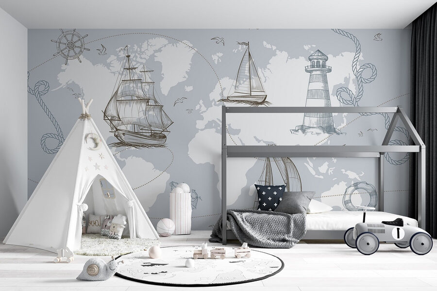 Μεταμορφώστε οποιοδήποτε δωμάτιο σε μια ναυτική απόδραση με αυτή τη γοητευτική τοιχογραφία τοίχου που απεικονίζει έναν χάρτη του κόσμου, συμπληρωμένο με ιδιόρρυθμα πλοία και έναν φάρο. Φανταστείτε τις ιστορίες που θα μπορούσαν να διηγηθούν αυτά τα σκάφη, πλέοντας σε ατελείωτες θάλασσες. Ιδανική για τη δημιουργία μιας άνετης γωνιάς όπου μπορείτε να ονειρεύεστε περιπέτειες ή απλώς να χαλαρώνετε με ένα βιβλίο. Τα διακριτικά σχέδια δένουν αβίαστα με διάφορους χώρους, προσθέτοντας βάθος και ίντριγκα. Οι φίλοι σας θα θαυμάσουν αυτή τη μοναδική πινελιά και ποιος ξέρει, μπορεί να εμπνεύσει ακόμα και ένα ή δύο αυθόρμητα ταξιδιωτικά σχέδια! Έτσι, αγκυροβολήστε αυτές τις ιδιότροπες δονήσεις ακριβώς στο σπίτι σας.