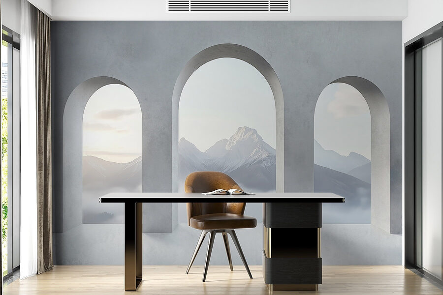 Μεταμορφώστε οποιονδήποτε χώρο με αυτή την εκπληκτική τοιχογραφία που μοιάζει με μια ζεστή απόδραση στη φύση. Φανταστείτε να ξυπνάτε, με τον καφέ στο χέρι, ενώ κοιτάζετε μέσα από κομψά τοξωτά παράθυρα τα μαγευτικά βουνά, που καλύπτονται απαλά από την ομίχλη. Είναι σαν να φέρνετε την ηρεμία της υπαίθρου στο σαλόνι σας – χωρίς να χρειάζεστε μπότες πεζοπορίας! Είτε πρόκειται για μια ήσυχη γωνιά ανάγνωσης είτε για ένα ανοιχτό σαλόνι, αυτή η τοιχογραφία προσθέτει μια ανάσα φρέσκου αέρα. Γιατί, λοιπόν, να μην αφήσετε τα βουνά να εμπνεύσουν ονειροπολήσεις και γαλήνιες στιγμές; Είναι η φύση στα καλύτερά της – δεν απαιτείται αντηλιακό!