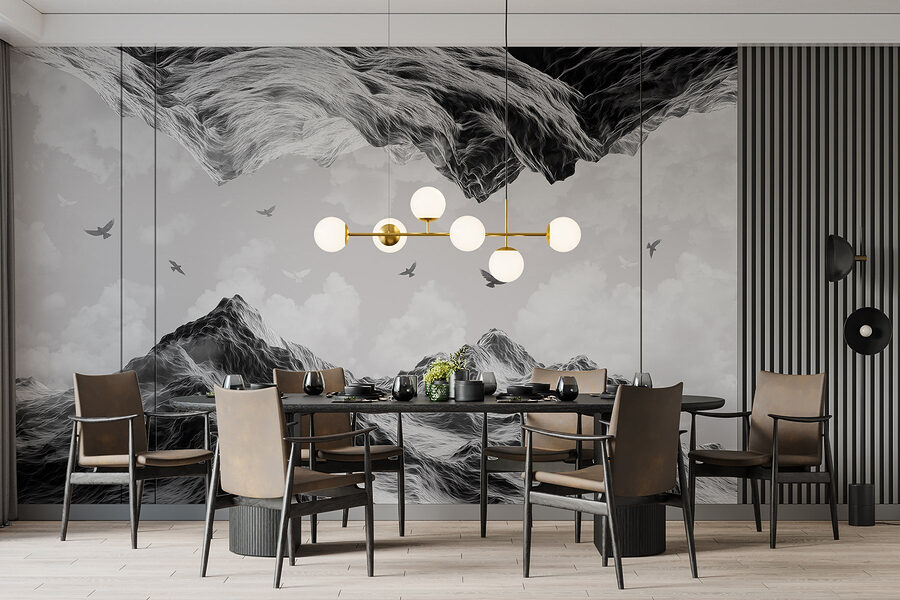 Φανταστείτε να μετατρέψετε το χώρο σας σε μια ζεστή απόδραση με αυτή την τοιχογραφία πουλιών που πετούν πάνω από μαγευτικά βουνά. Είναι σαν να προσκαλείτε τη φύση στο σπίτι σας, χωρίς τα κουνούπια. Οι απαλές αποχρώσεις ακουαρέλας δημιουργούν μια χαλαρωτική ατμόσφαιρα – ιδανική για ένα σαλόνι ή μια ήσυχη γωνιά ανάγνωσης. Καθώς ο ήλιος ρίχνει το φως του, αυτά τα πουλιά μοιάζουν να χορεύουν στον αέρα, προσθέτοντας μια πινελιά ιδιοτροπίας. Φανταστείτε να κουλουριάζεστε με ένα ζεστό ποτό, νιώθοντας την ηρεμία να σας κατακλύζει. Είναι κάτι περισσότερο από απλή διακόσμηση, είναι ένα μικρό κομμάτι της υπαίθρου, χωρίς να χρειάζεται να κάνετε πεζοπορία. Ποιος δεν θα το ήθελε αυτό, σωστά;