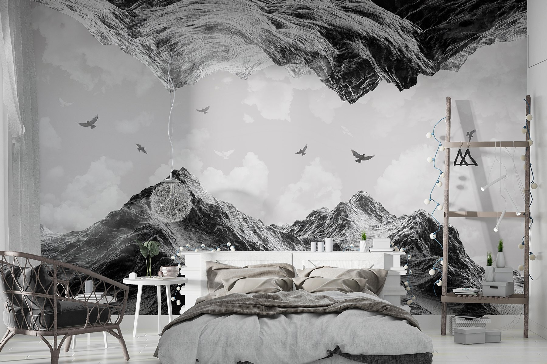 Φανταστείτε να μετατρέψετε το χώρο σας σε μια ζεστή απόδραση με αυτή την τοιχογραφία πουλιών που πετούν πάνω από μαγευτικά βουνά. Είναι σαν να προσκαλείτε τη φύση στο σπίτι σας, χωρίς τα κουνούπια. Οι απαλές αποχρώσεις ακουαρέλας δημιουργούν μια χαλαρωτική ατμόσφαιρα – ιδανική για ένα σαλόνι ή μια ήσυχη γωνιά ανάγνωσης. Καθώς ο ήλιος ρίχνει το φως του, αυτά τα πουλιά μοιάζουν να χορεύουν στον αέρα, προσθέτοντας μια πινελιά ιδιοτροπίας. Φανταστείτε να κουλουριάζεστε με ένα ζεστό ποτό, νιώθοντας την ηρεμία να σας κατακλύζει. Είναι κάτι περισσότερο από απλή διακόσμηση, είναι ένα μικρό κομμάτι της υπαίθρου, χωρίς να χρειάζεται να κάνετε πεζοπορία. Ποιος δεν θα το ήθελε αυτό, σωστά;