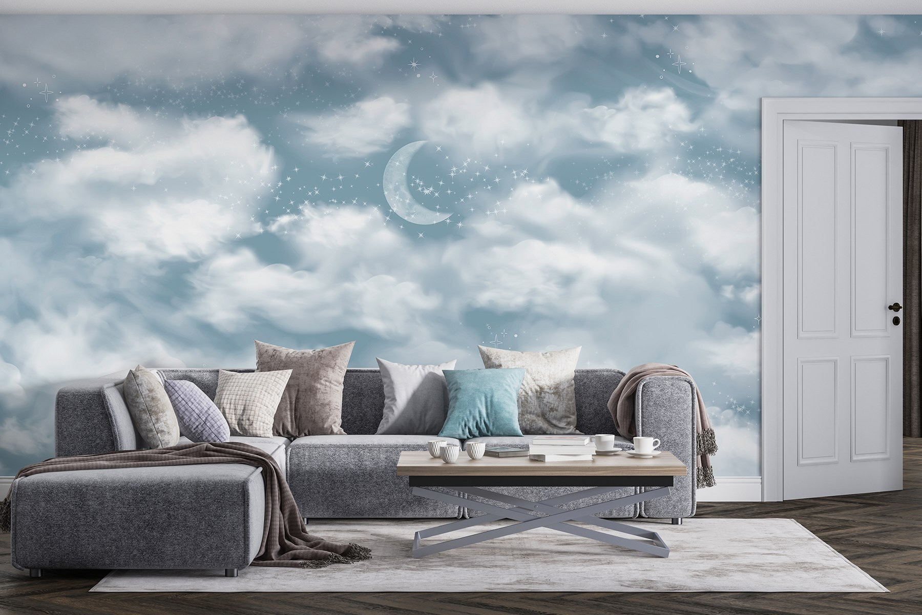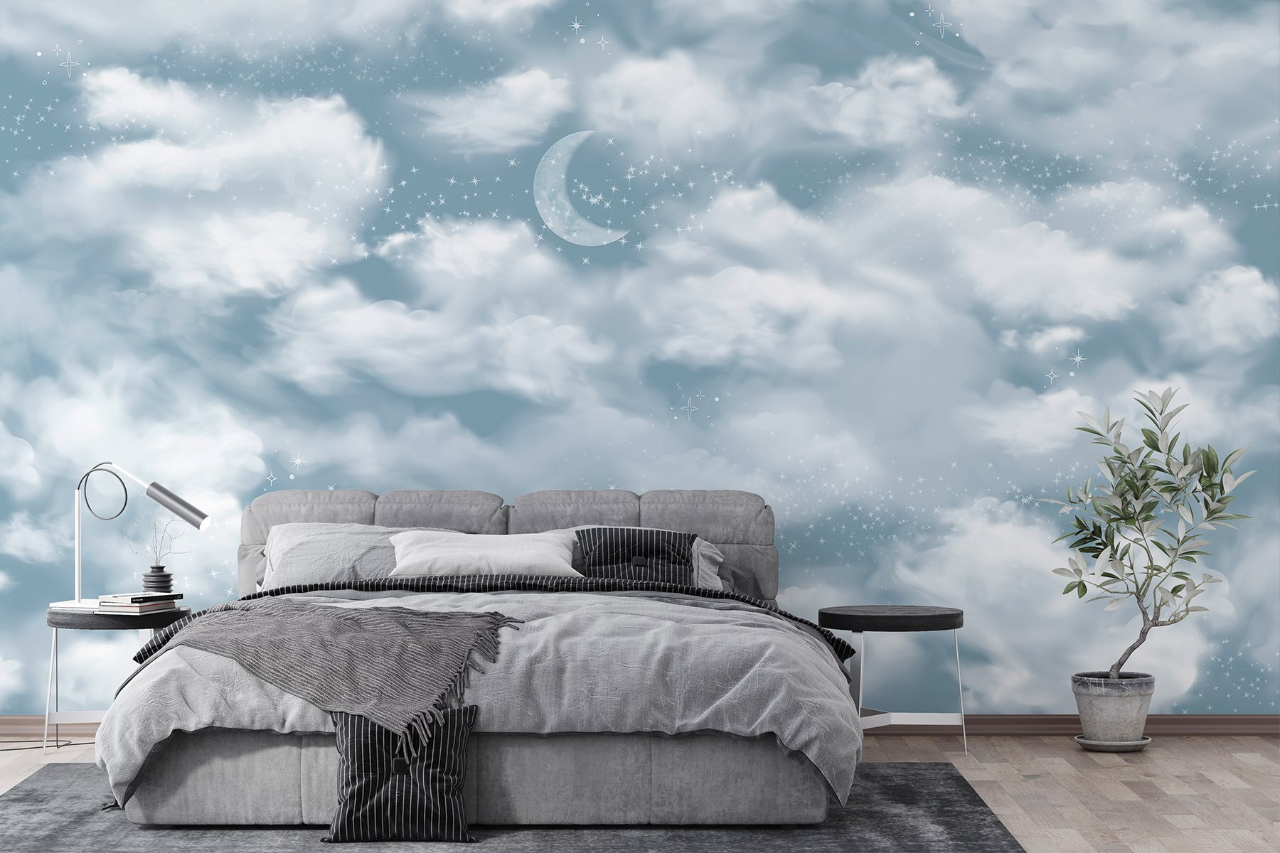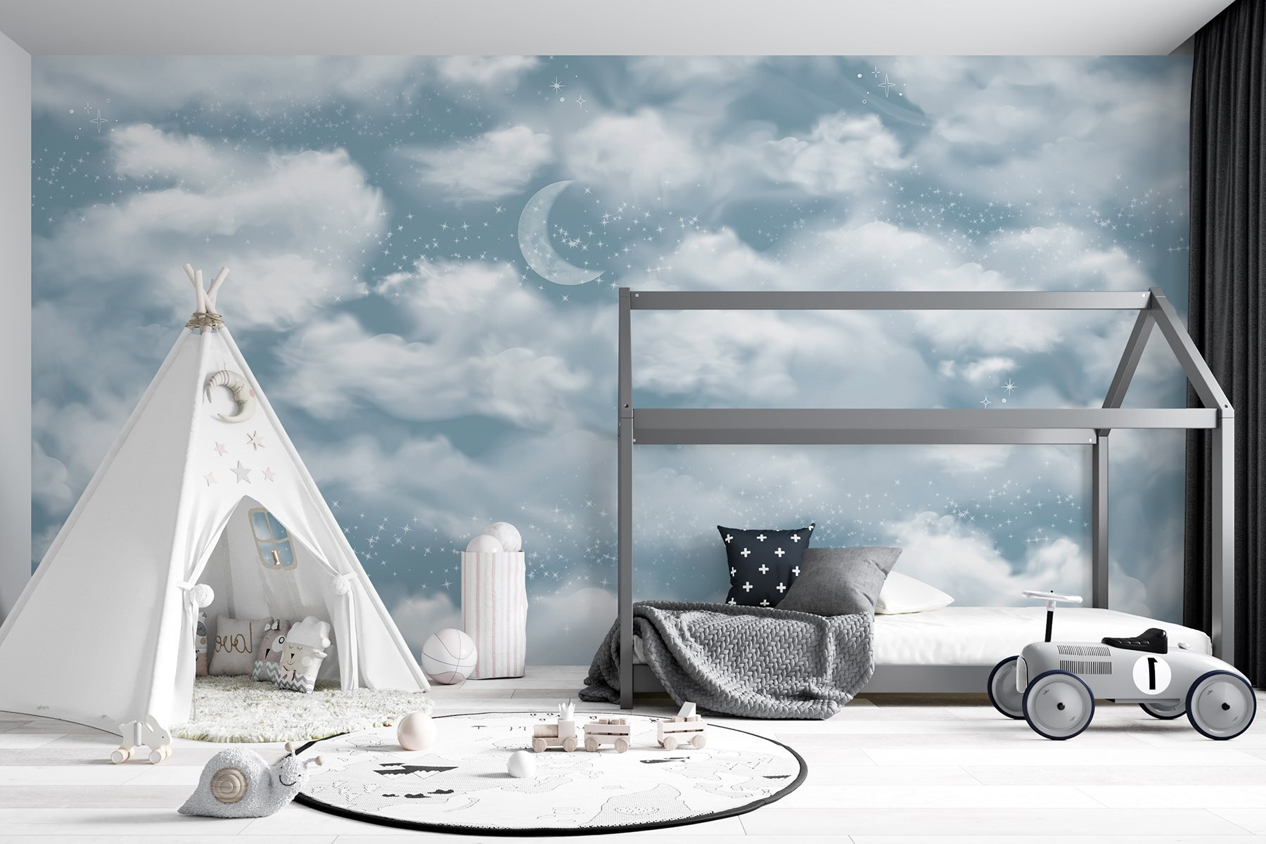 Μεταμορφώστε έναν απλό τοίχο σε μια ονειρική απόδραση με την τοιχογραφία “Moon in the Sky”. Φανταστείτε να μπαίνετε σε ένα δωμάτιο και να σας υποδέχονται απαλά, νερά νεφελώματα ακουαρέλας, ένα απαλό φεγγάρι που ξεπροβάλλει και μια πινελιά αστέρια που λαμπυρίζουν. Είναι σαν ένα μικρό κομμάτι του νυχτερινού ουρανού, άνετο αλλά και μαγευτικό. Ιδανική για ένα ηρεμιστικό υπνοδωμάτιο ή ένα ιδιόρρυθμο σαλόνι, αυτή η τοιχογραφία προσκαλεί σε ονειροπόληση και παρατήρηση των αστεριών. Ποιος δεν θα ήθελε να κουλουριαστεί με ένα βιβλίο κάτω από αυτά τα σύννεφα; Απλά φανταστείτε το – αγκαλιασμένοι με την αγαπημένη σας κουβέρτα, πίνοντας τσάι ενώ το φεγγάρι σας κλείνει το μάτι. Λίγη μαγεία για κάθε γωνιά!