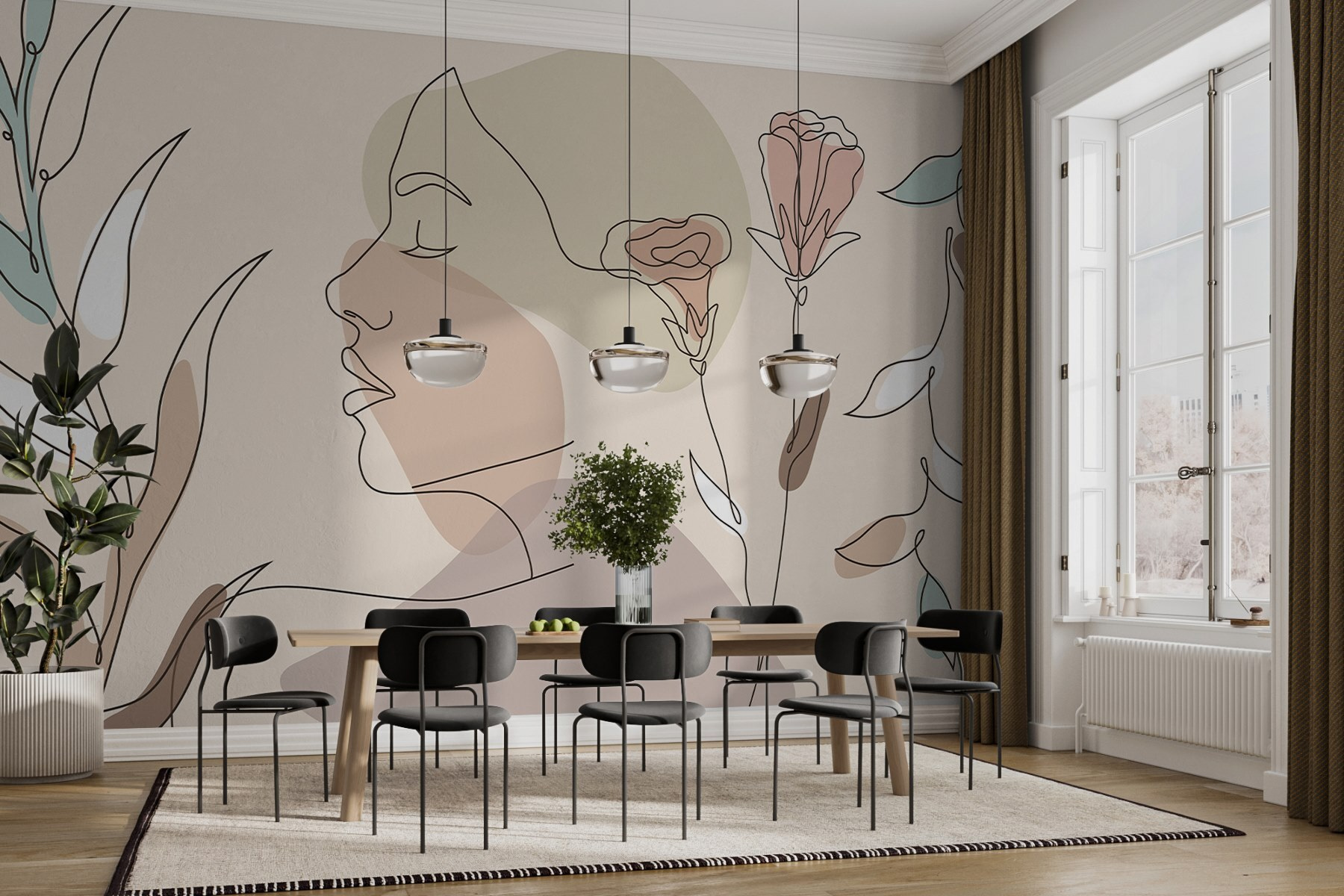 Μεταμορφώστε το χώρο σας με αυτή τη μαγευτική τοιχογραφία, με το γαλήνιο πρόσωπο μιας γυναίκας που κοσμείται από λεπτεπίλεπτα λουλούδια. Είναι σαν να έχετε ένα έργο τέχνης που δίνει ζωή σε κάθε δωμάτιο. Φανταστείτε το εξής: μπαίνετε μέσα και ξαφνικά είναι λίγο σαν να μπαίνετε σε έναν γαλήνιο κήπο, όπου η ομορφιά συναντά την ηρεμία. Οι απαλές πινελιές ακουαρέλας ψιθυρίζουν κομψότητα, ενώ οι ιδιόρρυθμες γραμμές δημιουργούν παιχνιδιάρικη κίνηση. Είτε πρόκειται για το σαλόνι είτε για μια ζεστή γωνιά, αυτή η τοιχογραφία προκαλεί χαρά και συζήτηση. Ιδανική για όσους επιθυμούν ένα άγγιγμα φύσης σε εσωτερικούς χώρους – είναι σαν να φέρνετε τον έξω κόσμο μέσα χωρίς όλη τη γύρη! Δώστε στους τοίχους σας μια νέα φωνή και αφήστε τους να αφηγηθούν μια ιστορία γαλήνης και χάρης.