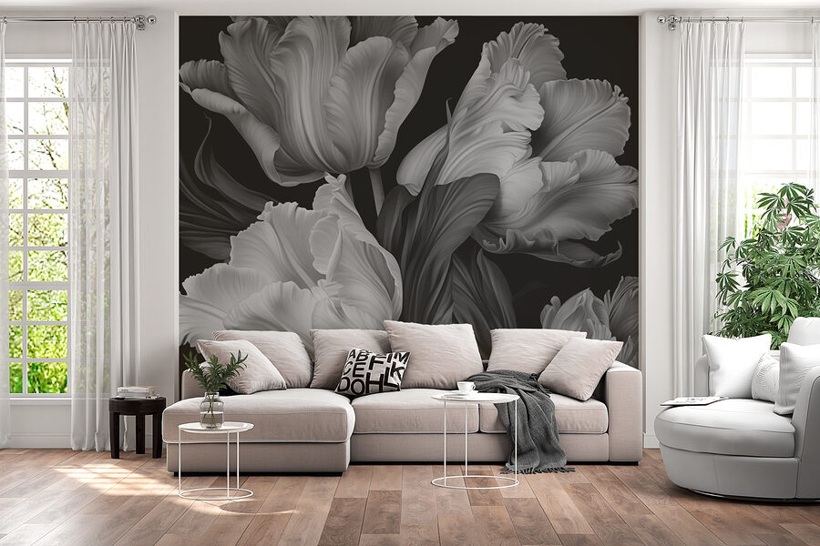 Μεταμορφώστε οποιοδήποτε δωμάτιο με αυτή την εκπληκτική τοιχογραφία με κομψές τουλίπες σε μονόχρωμους τόνους. Είναι σαν να έχετε ένα έργο τέχνης στον τοίχο σας χωρίς να πληρώνετε εισιτήριο για το μουσείο. Φανταστείτε να βολευτείτε με ένα ζεστό ποτό, ατενίζοντας αυτές τις χαριτωμένα λικνιζόμενες τουλίπες – τόσο ηρεμιστικές, αλλά και εντυπωσιακές. Η αντίθεση του μαύρου και του λευκού προσθέτει λίγο δράμα, ιδανικό για εκείνες τις δύσκολες μέρες που θέλετε απλώς να κλειστείτε μέσα. Οι καλεσμένοι μπορεί ακόμη και να σταματήσουν, υπνωτισμένοι, αναρωτώμενοι αν μπήκαν σε μια λουλουδένια χώρα των θαυμάτων. Η απλότητα όλων αυτών των πραγμάτων μοιάζει αναζωογονητικά κομψή – σε ποιον δεν αρέσει αυτό; Αυτή η τοιχογραφία έχει γοητεία, εκλέπτυνση και μια δόση ιδιοτροπίας. Είναι τέχνη τοίχου που κάνει μια δήλωση.