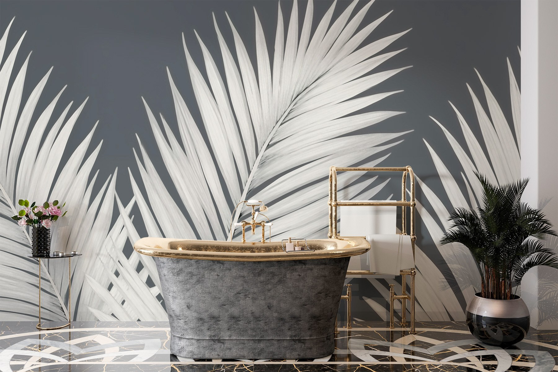 Μεταμορφώστε το χώρο σας σε μια τροπική απόδραση με αυτή την εκπληκτική τοιχογραφία με κομψά φύλλα φοίνικα σε δροσερό γκρι φόντο. Είναι σαν να φέρνετε ένα κομμάτι του παραδείσου στο σαλόνι σας – χωρίς την άμμο ανάμεσα στα δάχτυλα των ποδιών σας. Φανταστείτε να πίνετε τον πρωινό σας καφέ ή να χάνεστε σε ένα βιβλίο ενώ περιβάλλεστε από αυτά τα πανέμορφα φύλλα. Οι διακριτικοί τόνοι δημιουργούν μια ηρεμιστική ατμόσφαιρα, κάνοντας κάθε δωμάτιο να αισθάνεται αβίαστα κομψό. Ιδανικό για όσους θέλουν μια γεύση φύσης χωρίς συντήρηση – δεν χρειάζεται πότισμα! Αυτή η τοιχογραφία ψιθυρίζει στυλ και γαλήνη, καθιστώντας δύσκολο να μην χαμογελάτε κάθε φορά που περνάτε από εκεί.